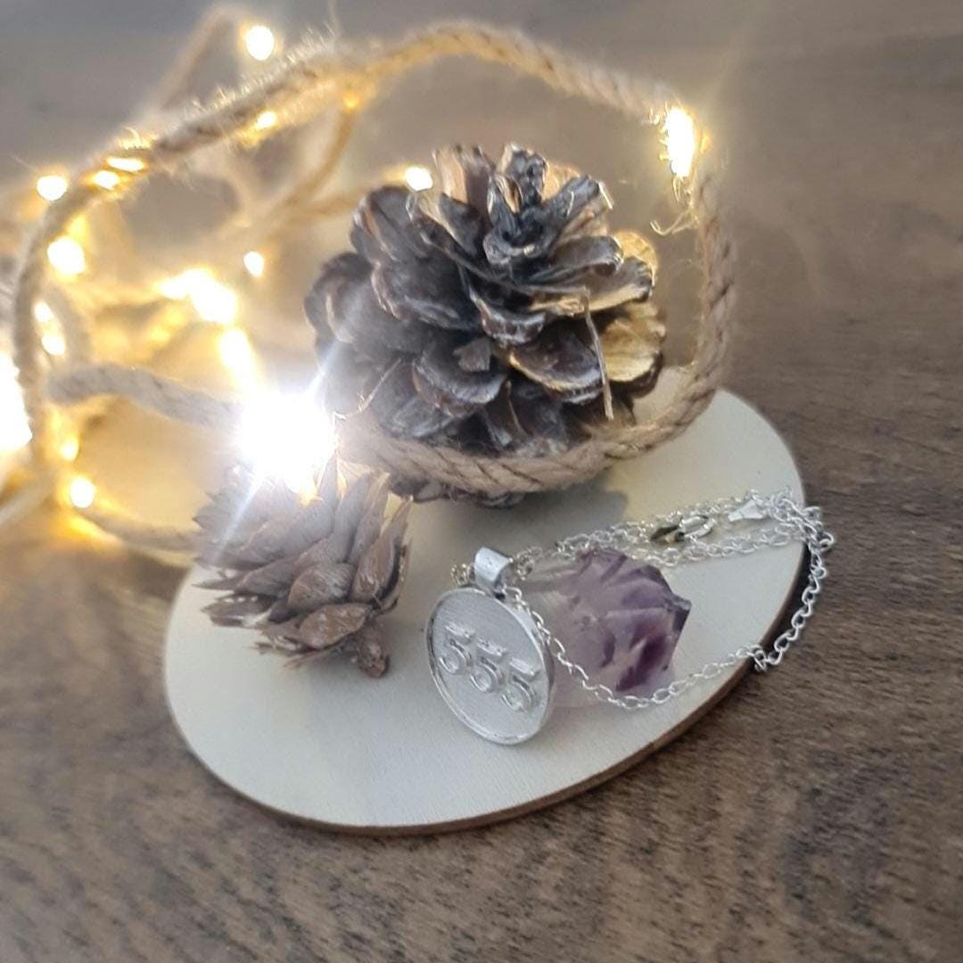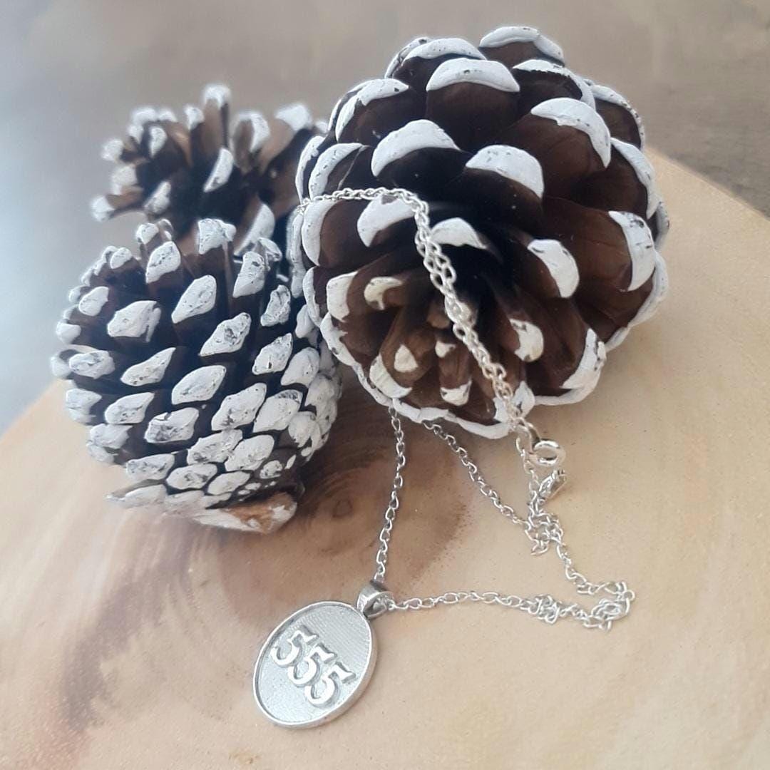 555 Angel Number Pendant: Sterling Silver Good Luck Charm