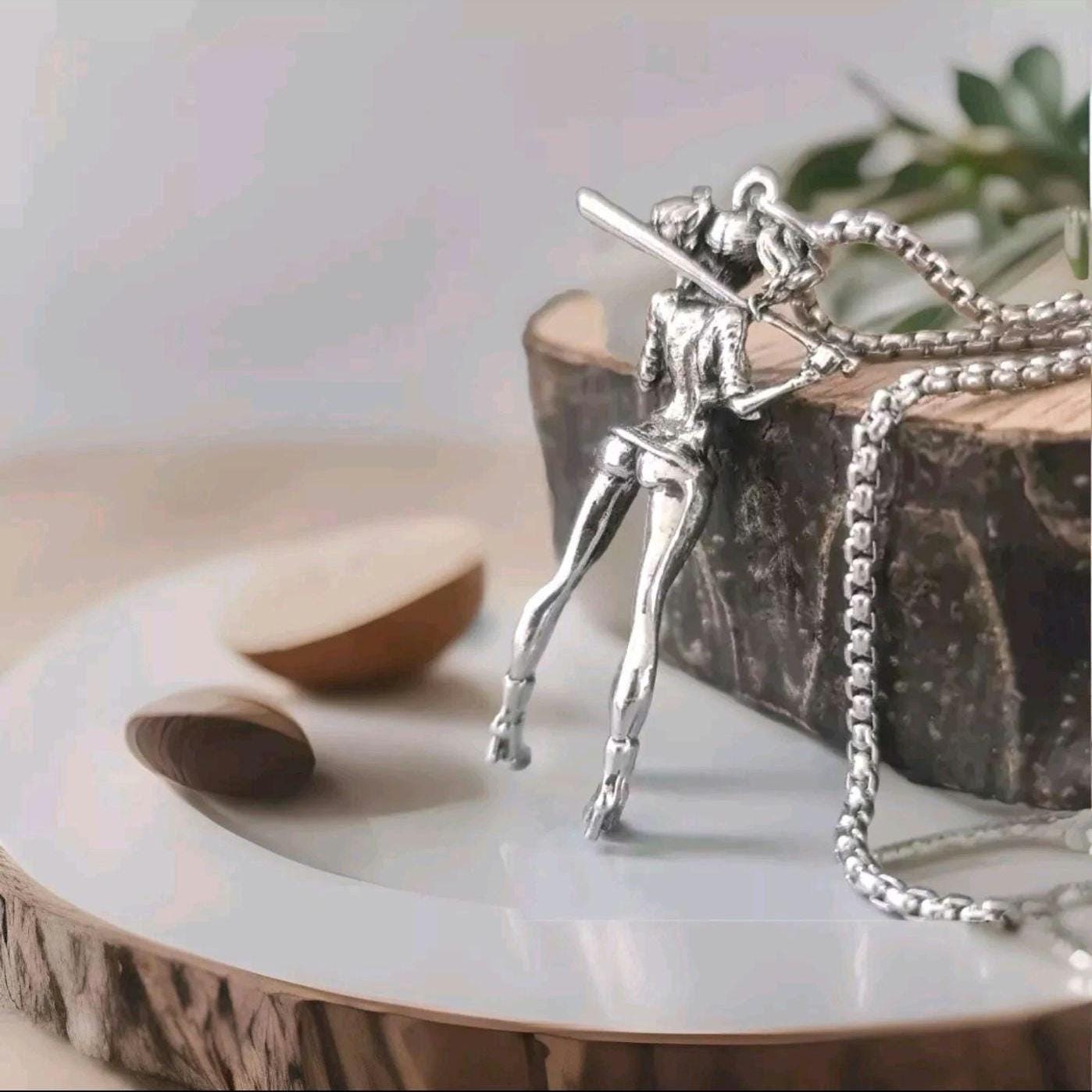 Adorable baseball retro girl Necklace adds a touch of playfulness to your look and outfit.
