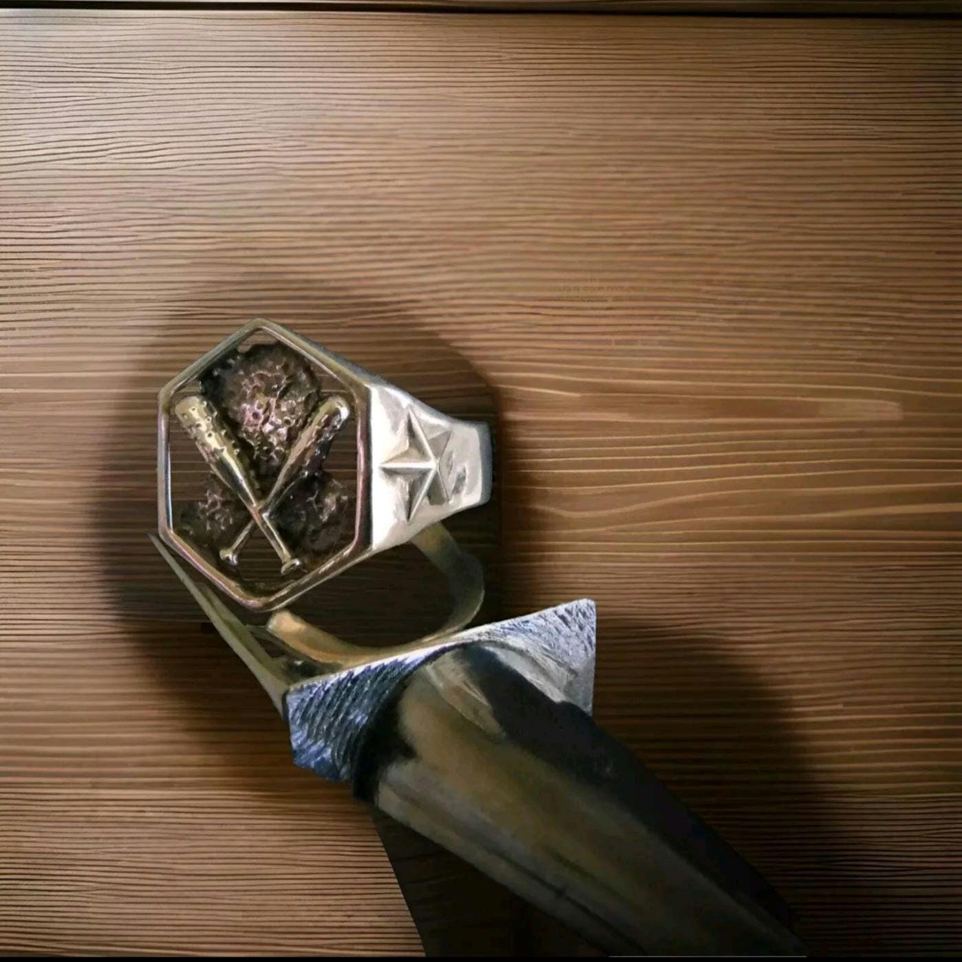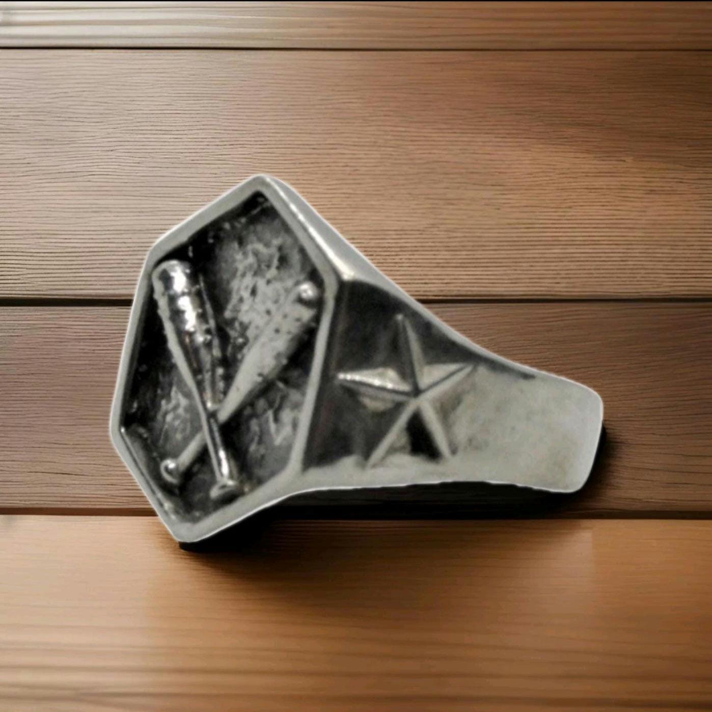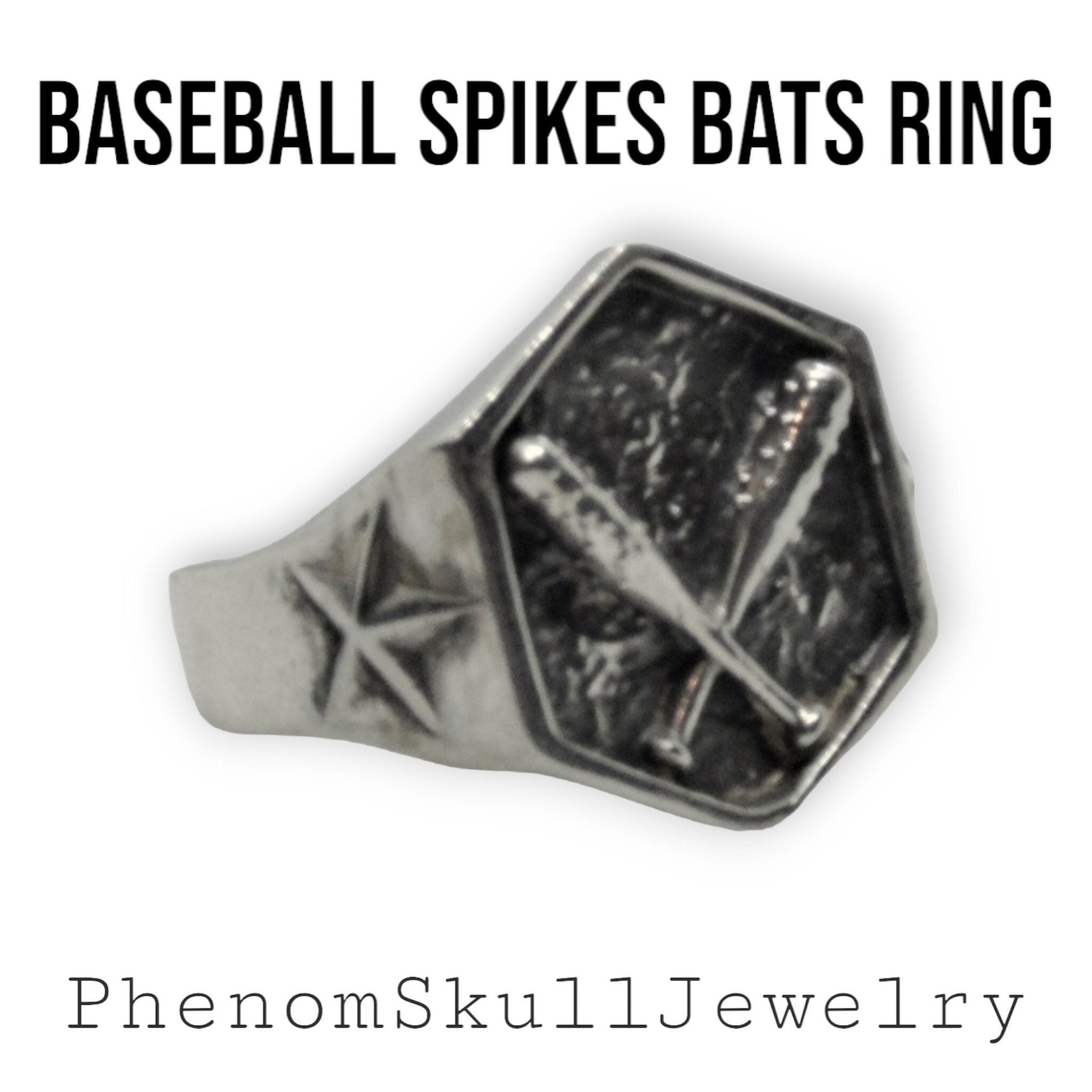 If you're looking for an eye-catching and unique ring that is perfect for any biker or alternative fashion enthusiast, look no further than the Baseball Spikes Bats Ring!