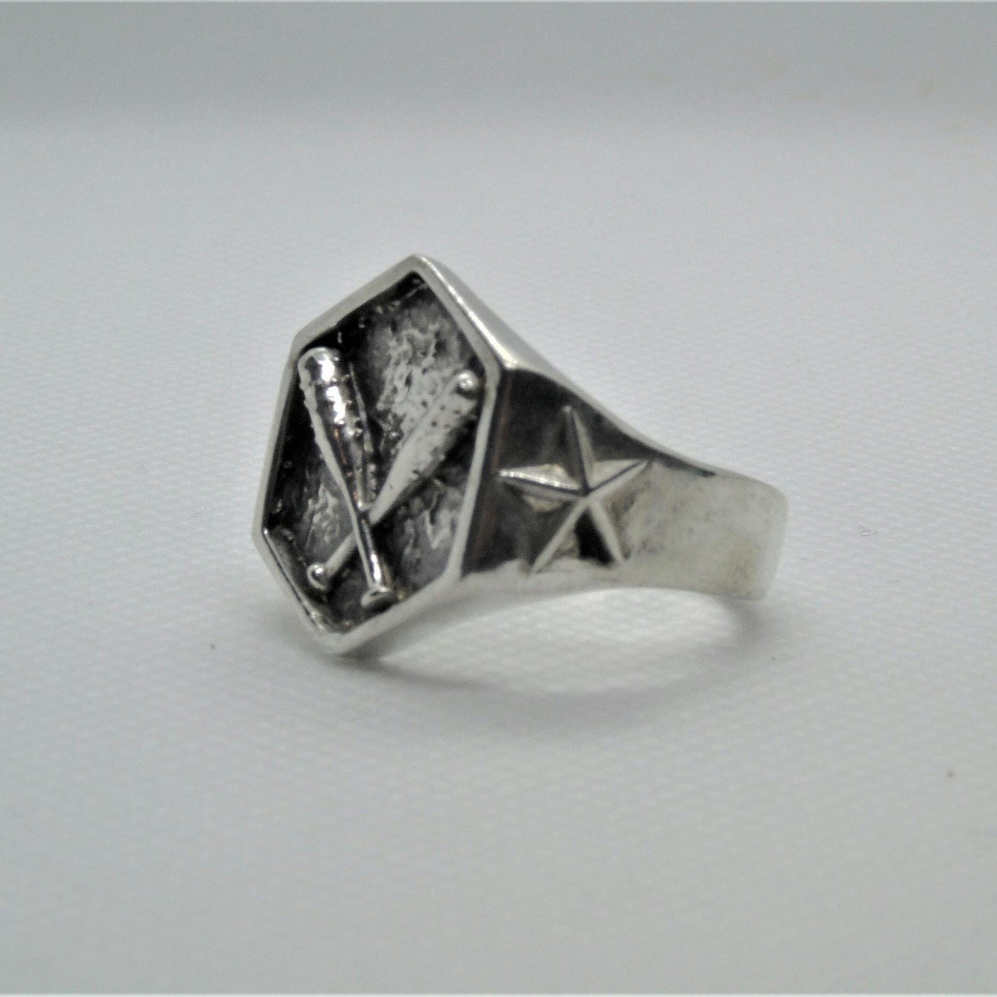Introducing the Baseball Spikes Bats Ring – an amazing design that will bring out your inner biker! This handcrafted signet ring features a one-of-a-kind design with baseball spikes and bats that is sure to catch the eye. Made of high-quality sterling silver, this ring is adjustable and weighs about 17 grams. It's a perfect gift for men who love to rock a unique style that shows off their love for the game of baseball.