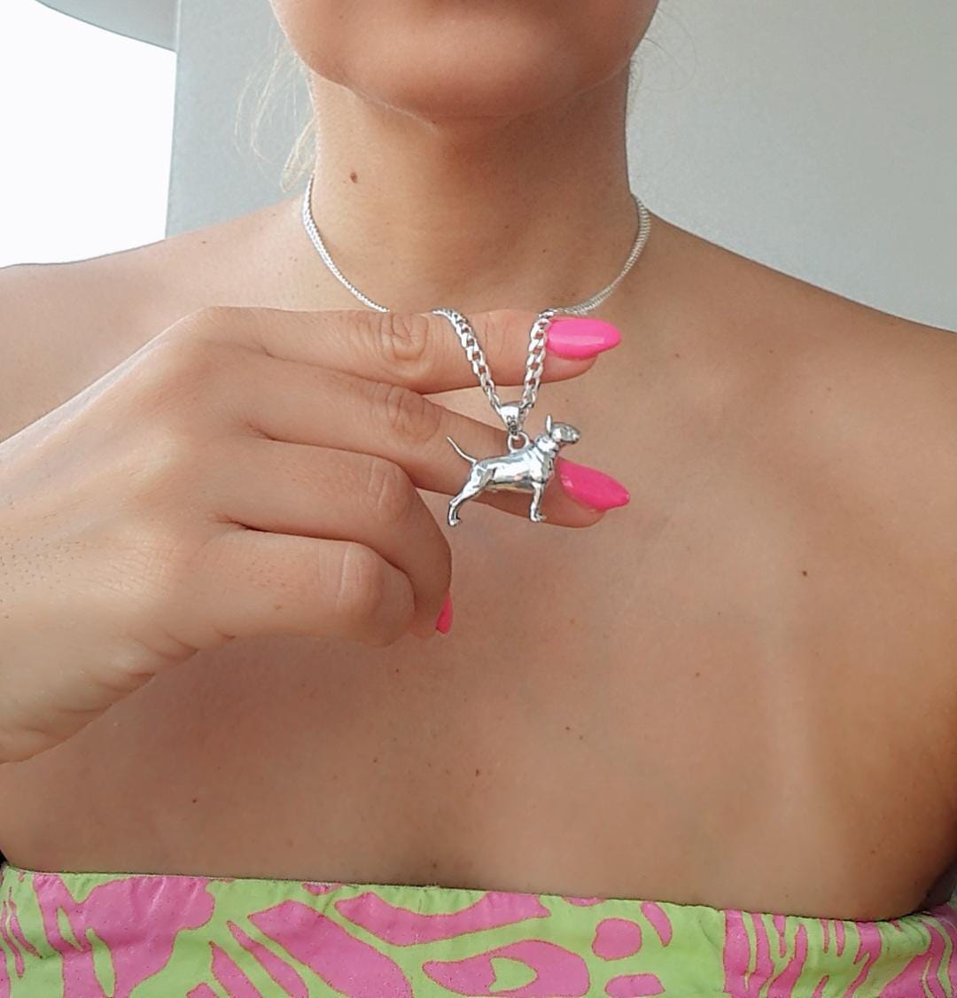 English bull Terrier figurine Pendant anatomically accurate - Gift for bully Lovers-Solid Sterling Silver