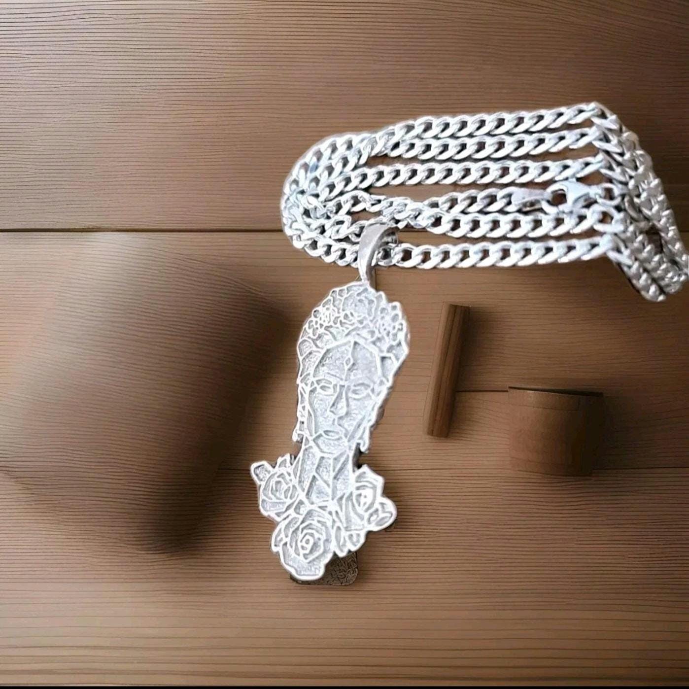 Frida Kahlo Pendant: 925 Sterling Silver Artistic Necklace