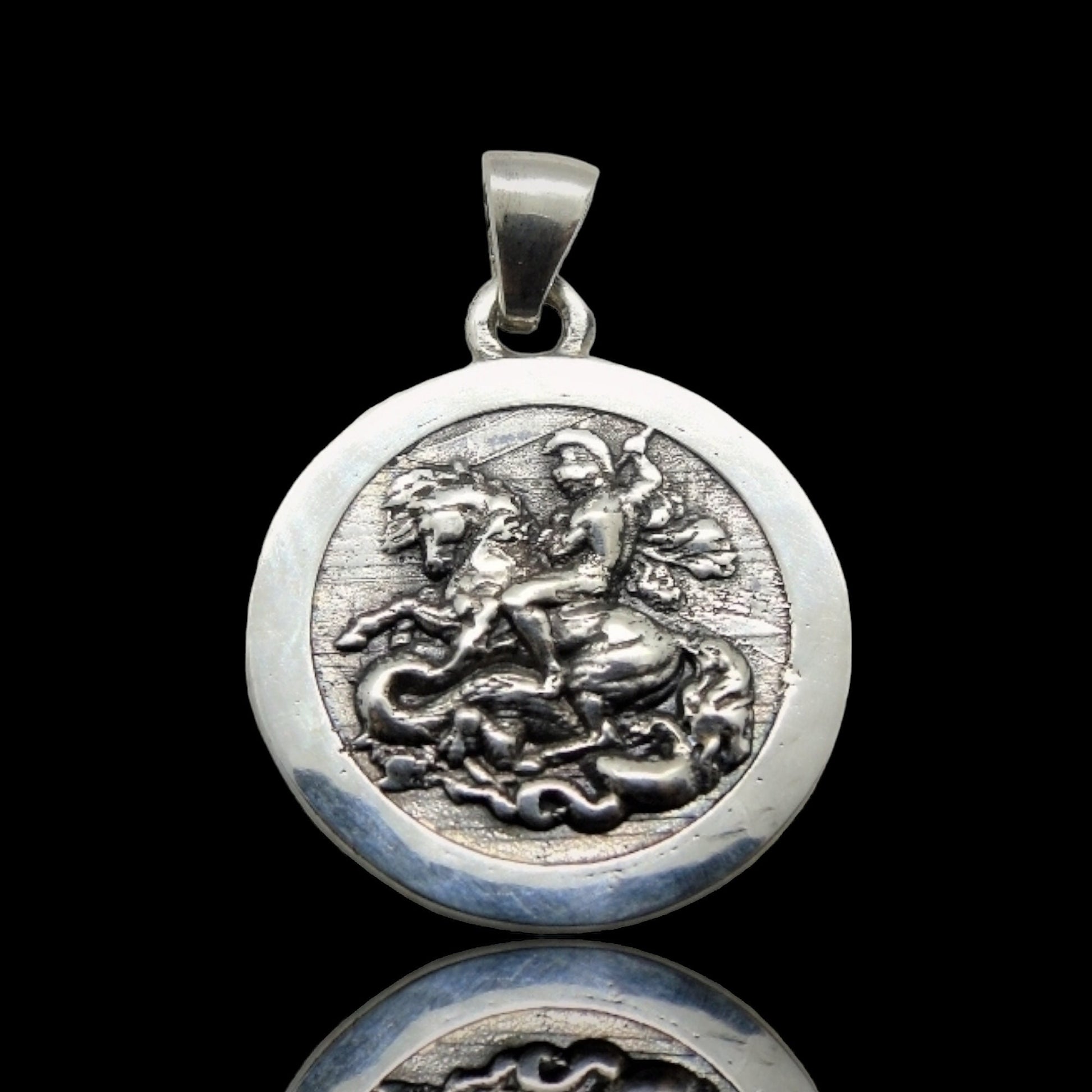 The Sterling Silver Saint George Pendant is a unique piece of religious jewelry that is handcrafted to perfection.