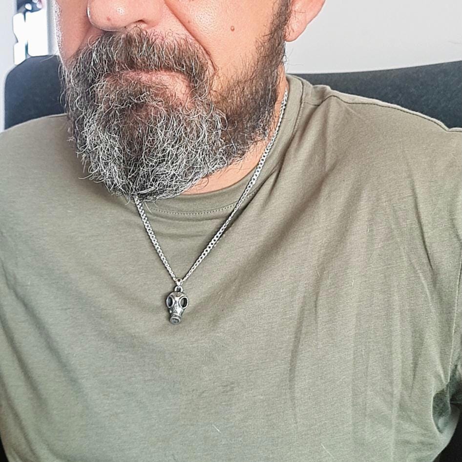 Wearing this gas mask Handmade Sterling Silver pendant makes a bold statement that is sure to turn heads.
