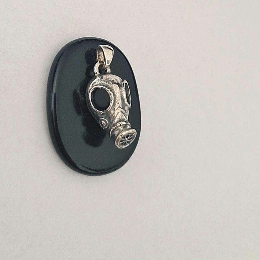 The gas mask Handmade Sterling Silver pendant is made with utmost attention to detail and quality.