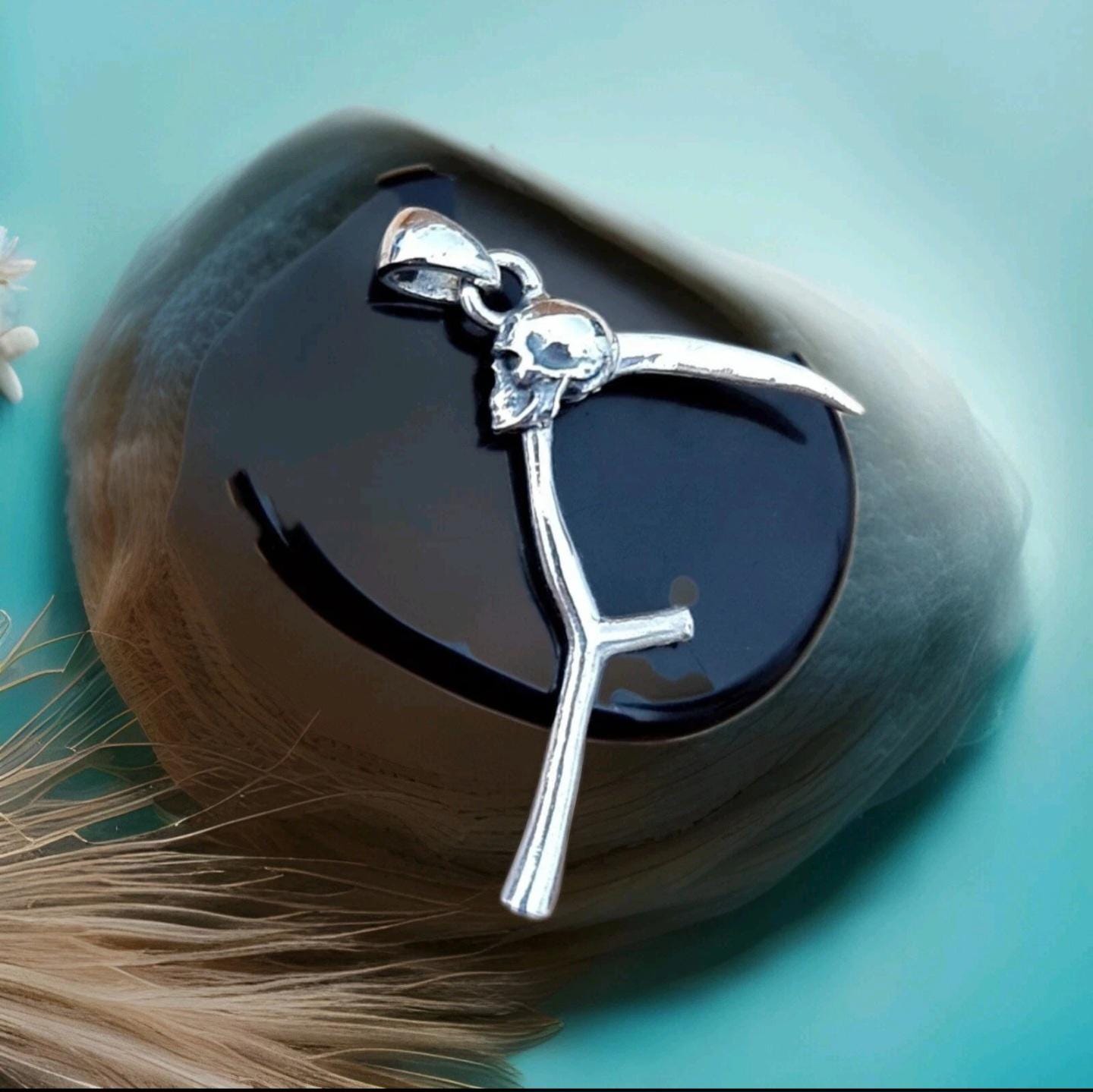 Grim Reaper Scythe Pendant: Sterling Silver Skull Necklace, Gothic La Muerte Talisman