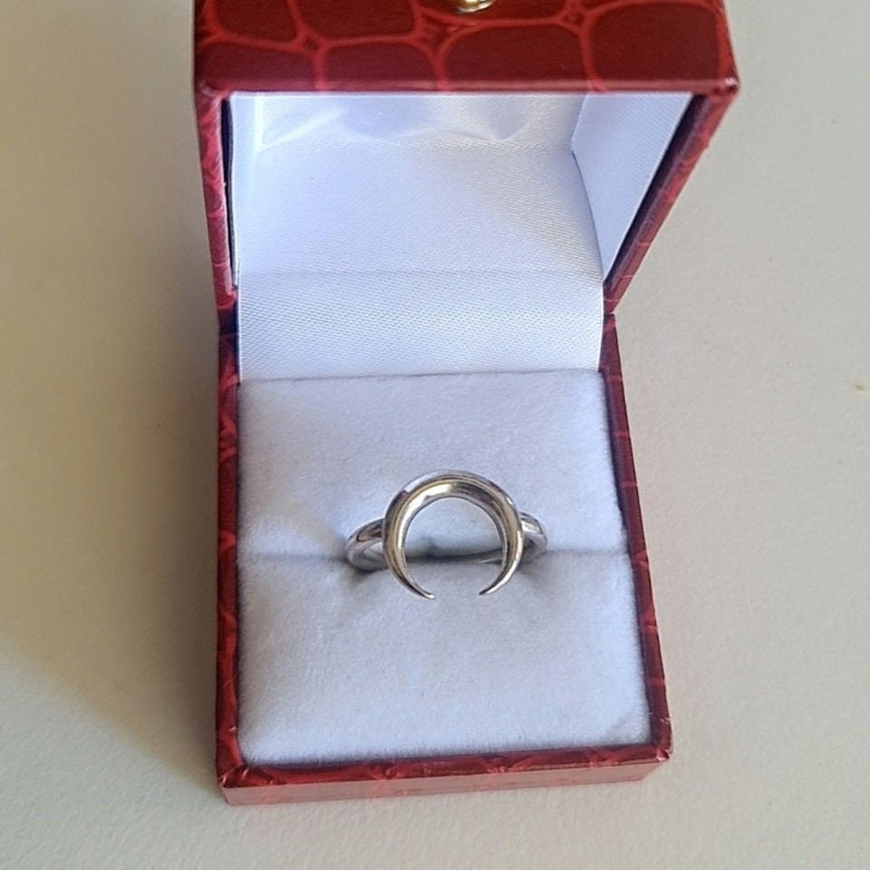 This Sterling Silver Moon Ring offers a unique and stylish addition to your jewelry collection. You can wear it for any occasion, whether it's a casual outing with friends or an elegant night out. The simple yet elegant design of the crescent moon with double horns is perfect for those who love minimalist jewelry.