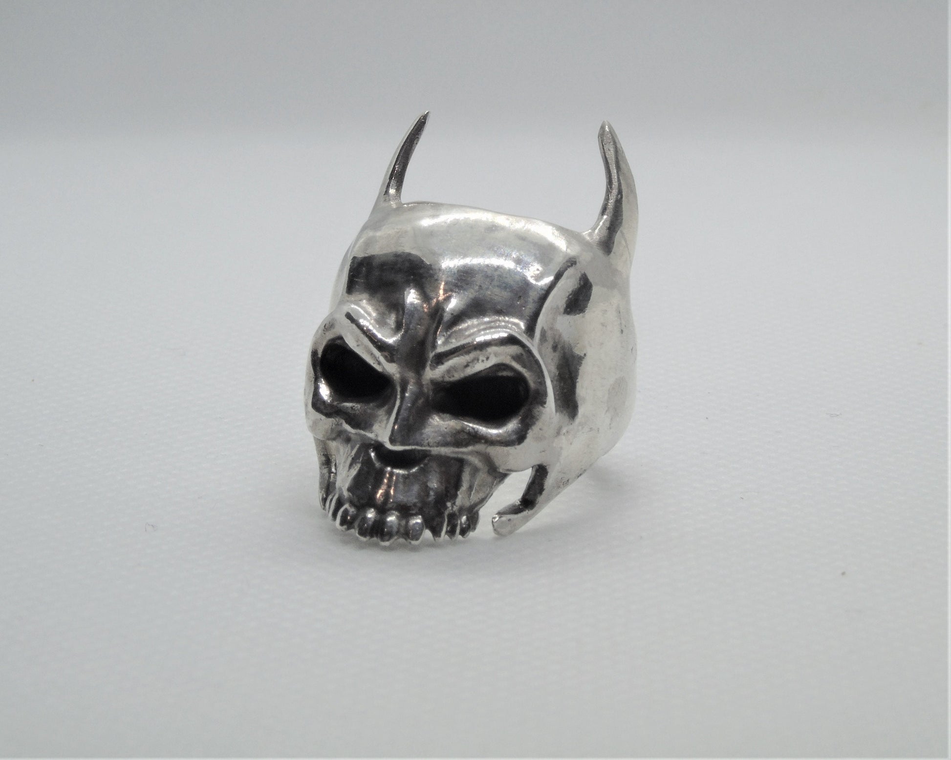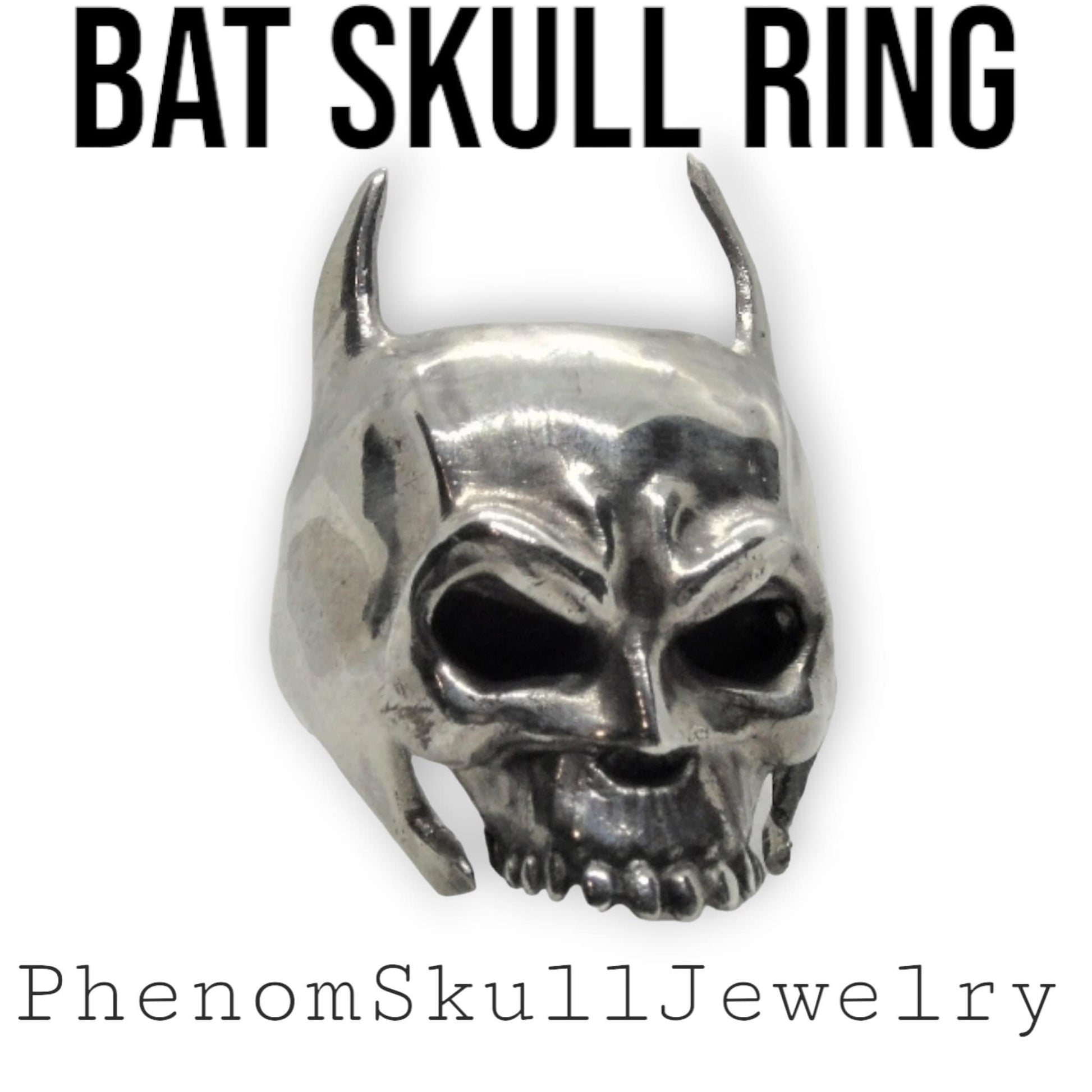 Handmade 925 Silver Bat Skull Ring: Gothic Biker Accessory