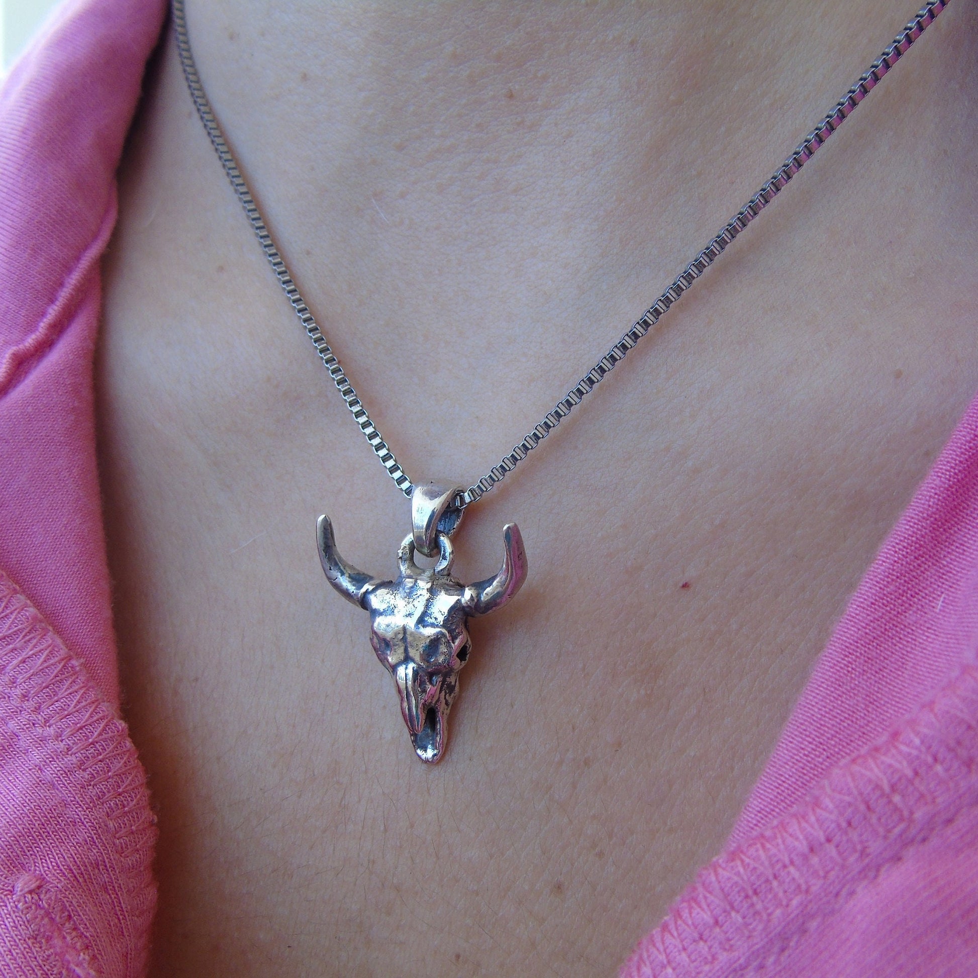 Handmade Buffalo Skull 925 Silver Necklace: Gothic Western Jewelry