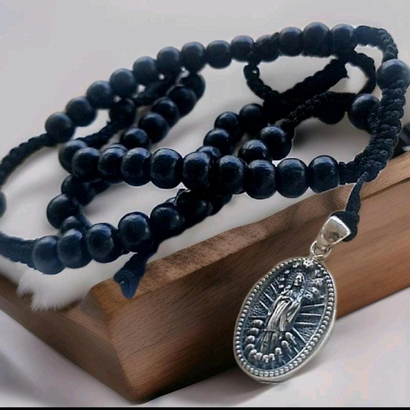 This rosary necklace is handmade with 925 silver, ensuring the quality and durability of the piece.
