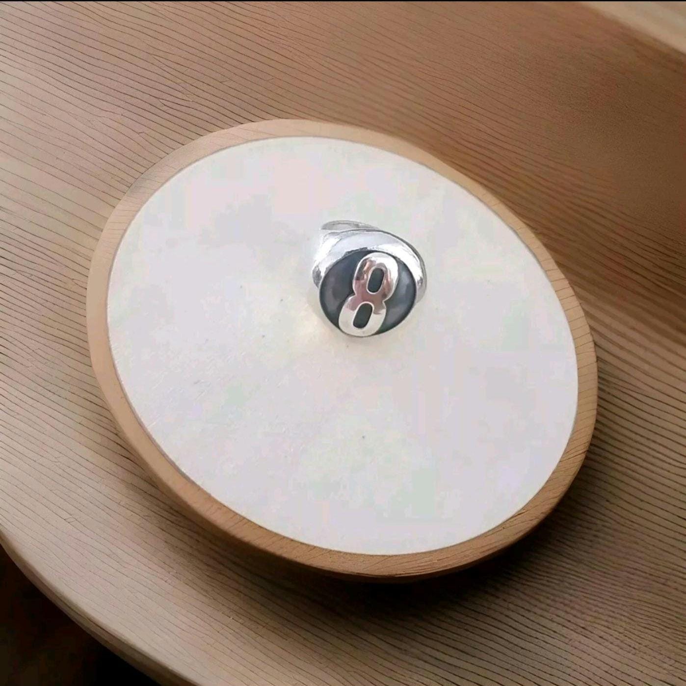 Handmade Sterling Silver 8 Ball Ring: Billiard Inspired Statement Jewelry