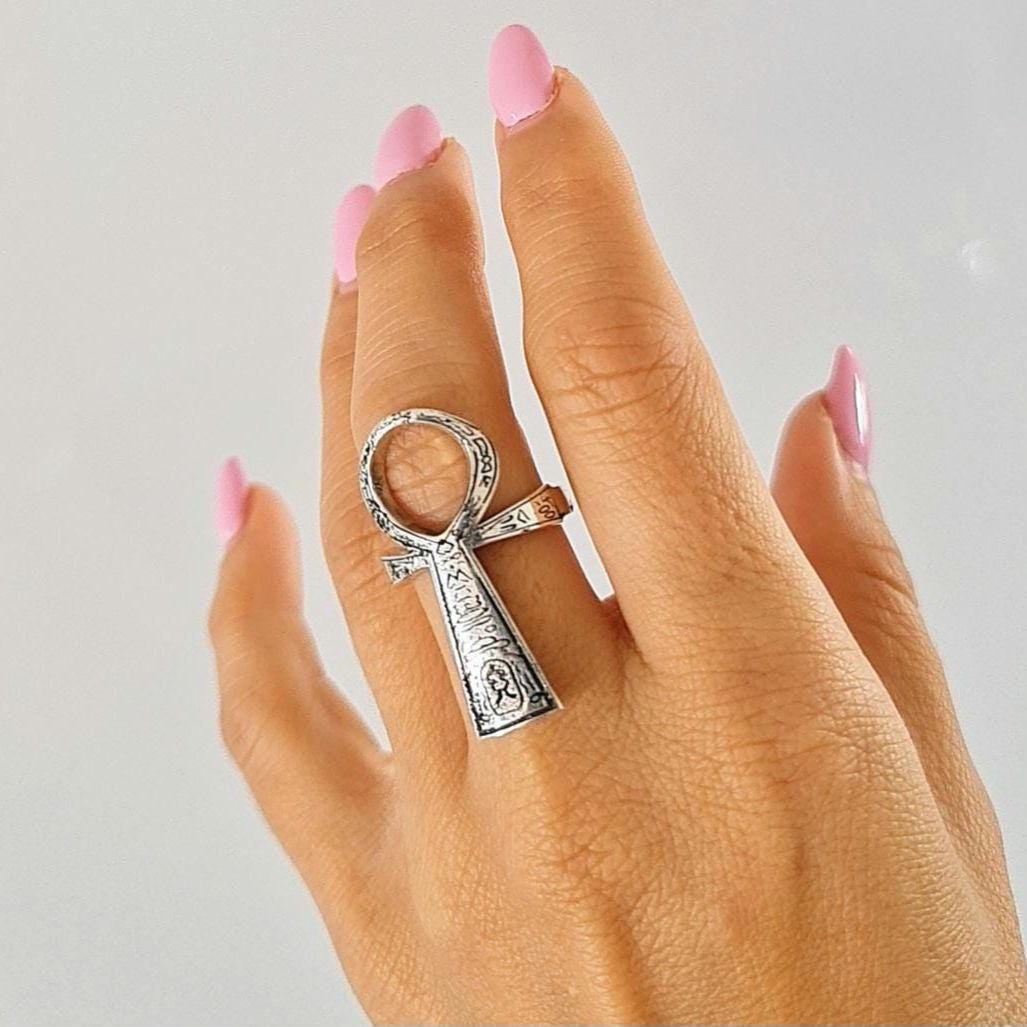 Handmade Sterling Silver Ankh Ring: Egyptian Key of Life Jewelry