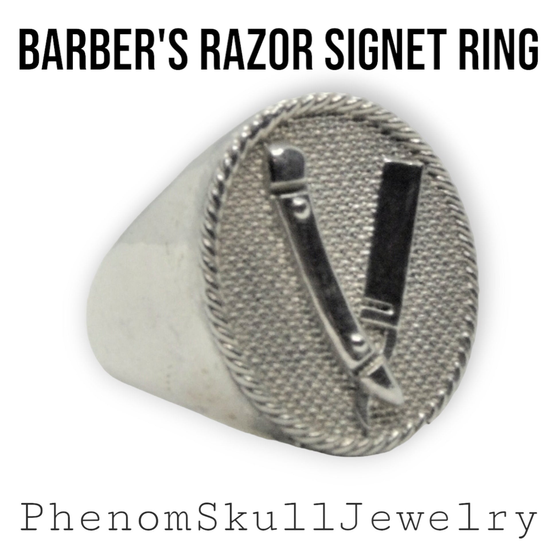 Shop now and own a unique piece of jewelry that will showcase your love of the barber profession. we offer worldwide shipping. Order now to experience the exceptional craftsmanship of our Barber's Razor Signet Ring.