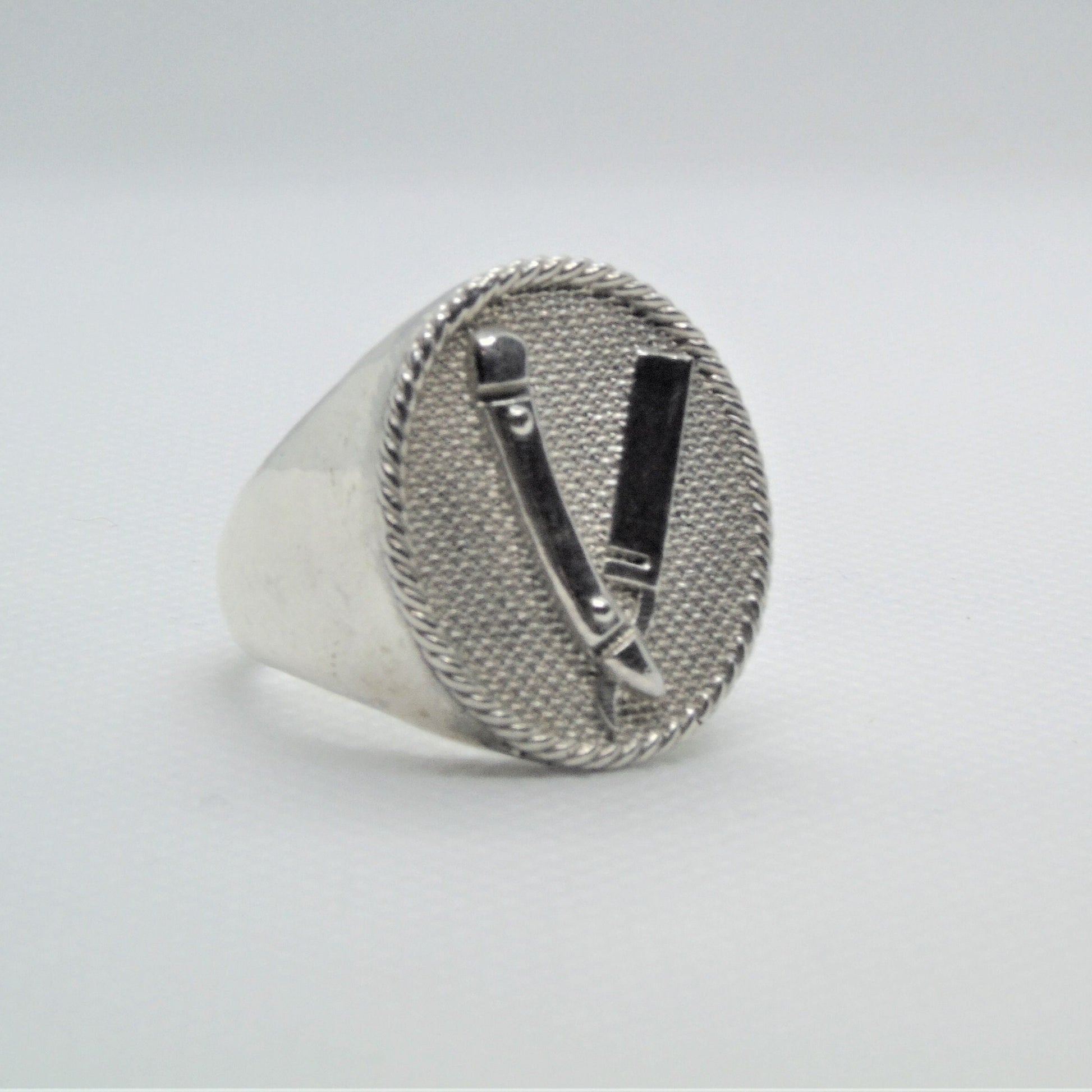 Handmade Sterling Silver Barber Razor Signet Ring - Gothic Style