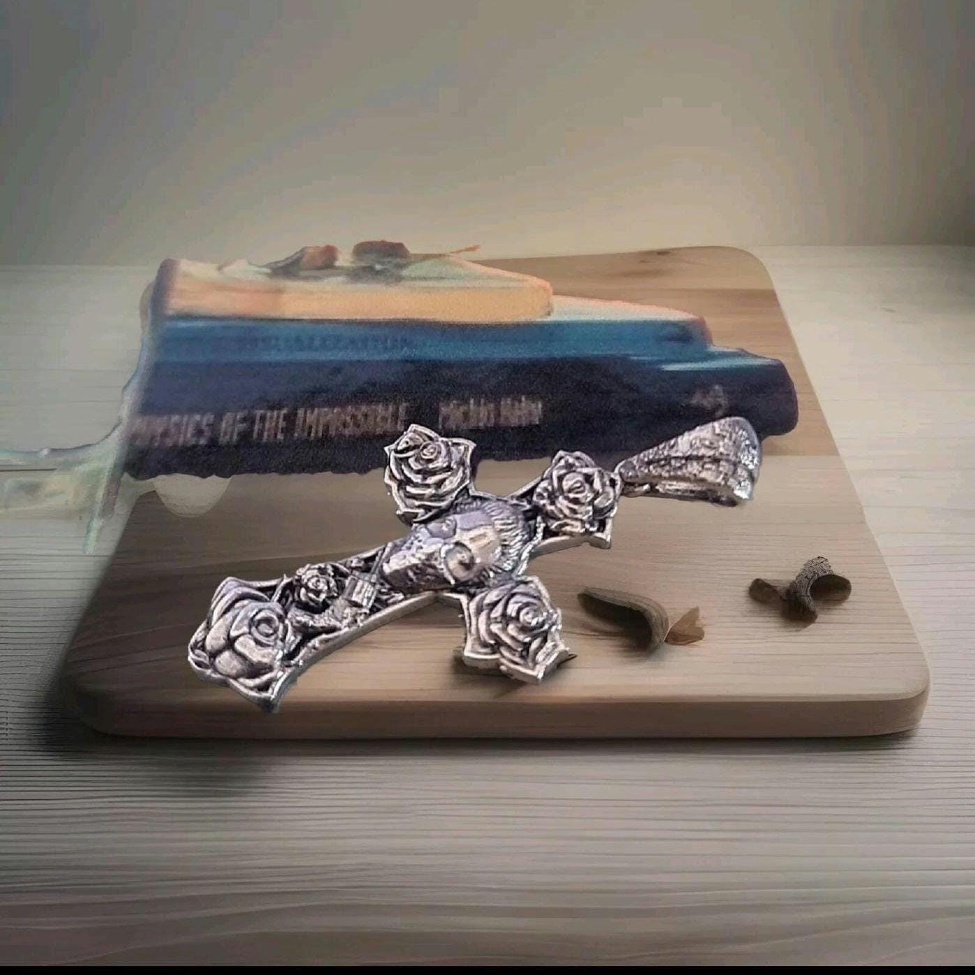 This Sterling silver Handmade Sterling Silver Mexican Chicano Tattoo Style Cross) of immaculate detail.