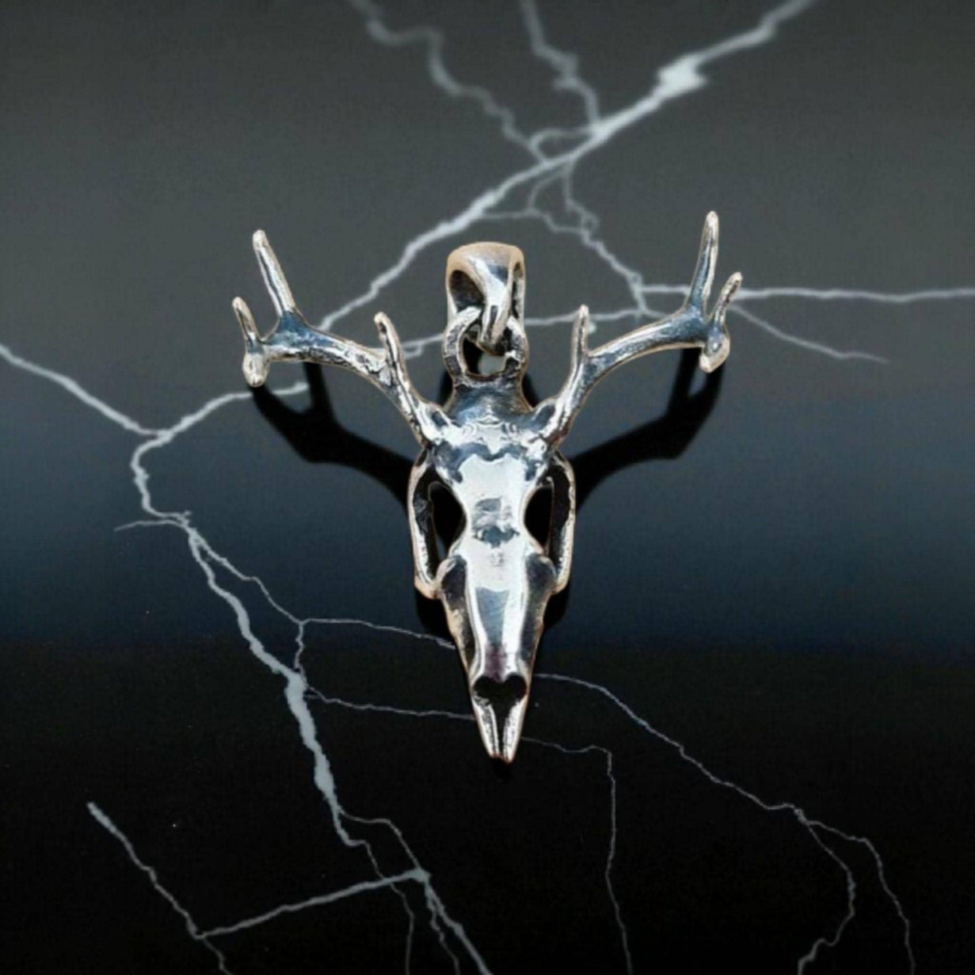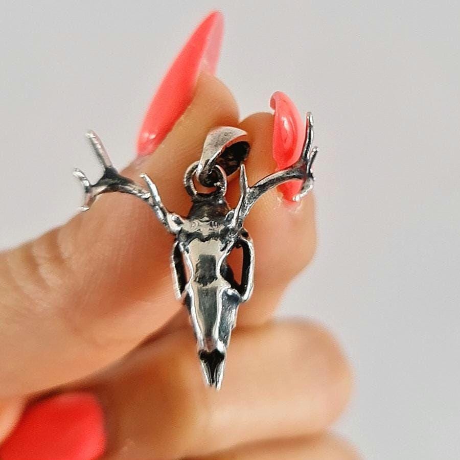 Handmade Sterling Silver Deer Skull Necklace: Gothic Animal Jewelry
