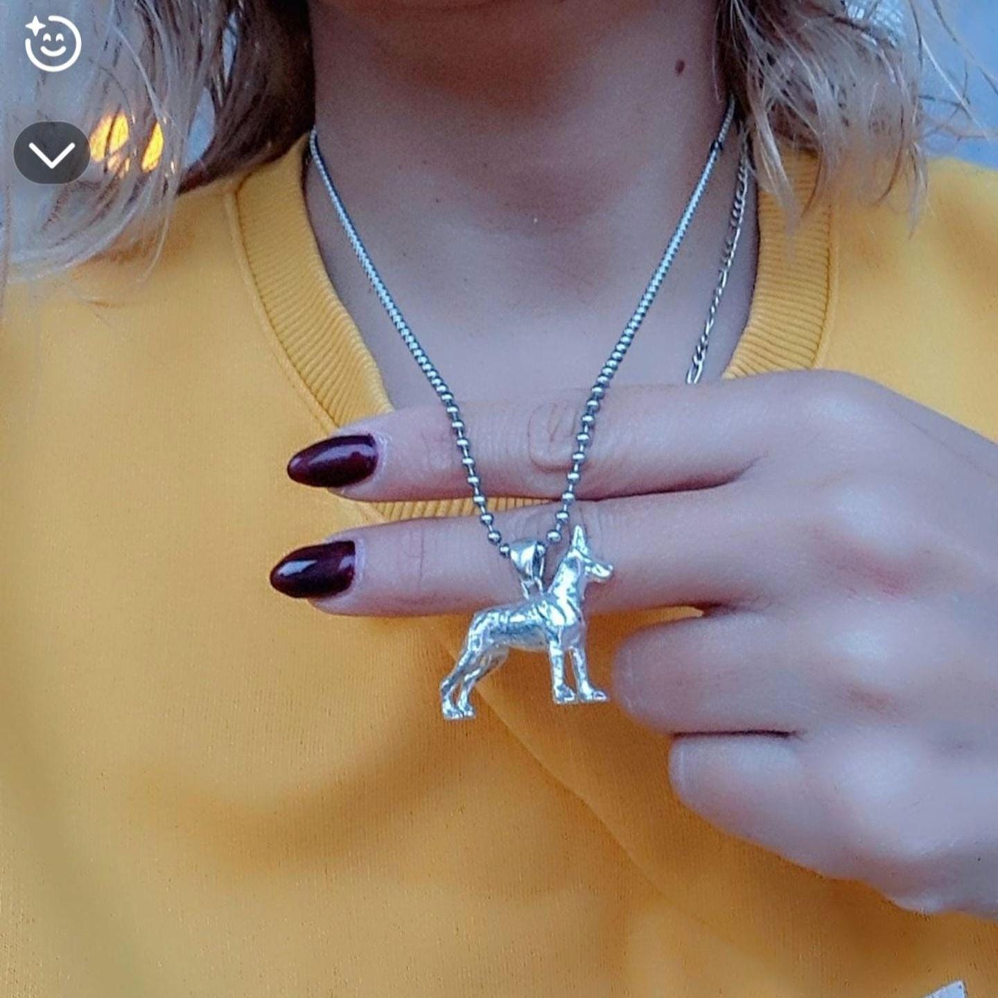 This beautifully crafted Doberman Pinscher figurine pendant is made from high-quality 925 silver, creating a stunning minimalist piece that is sure to draw attention. Featuring anatomically accurate detailing, this pendant weighs approximately 14 grams