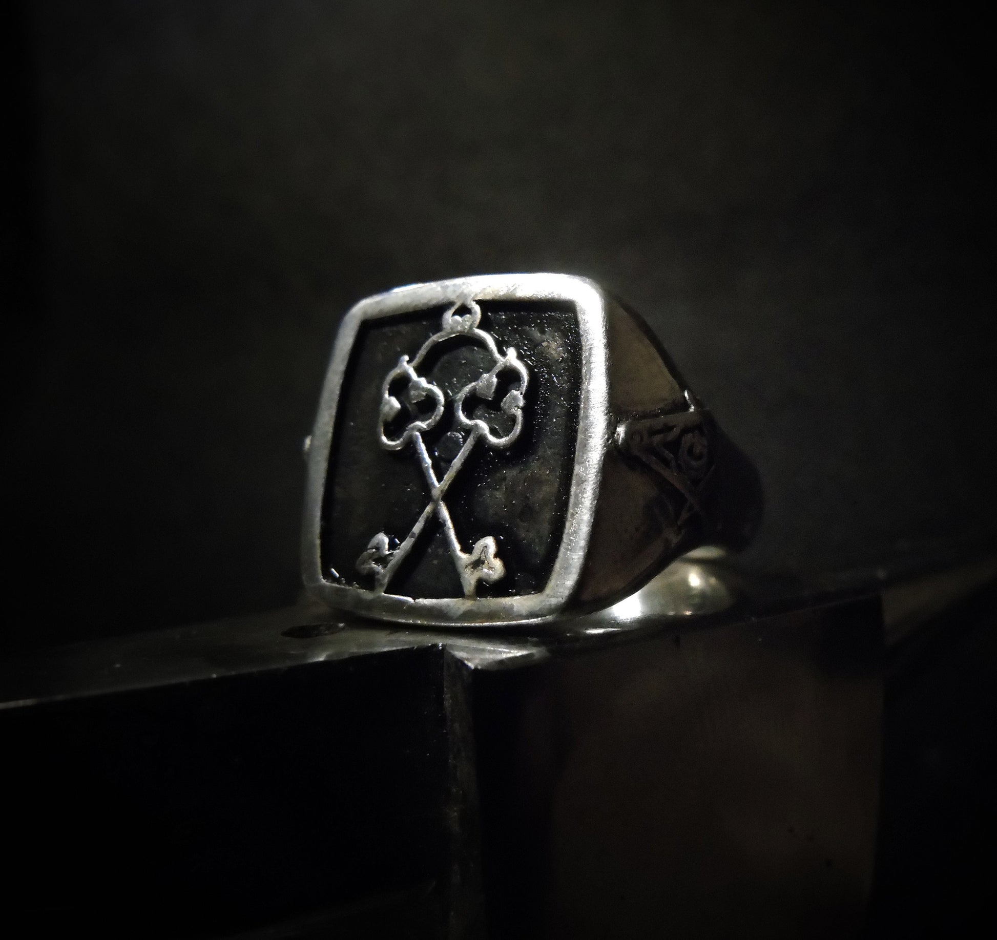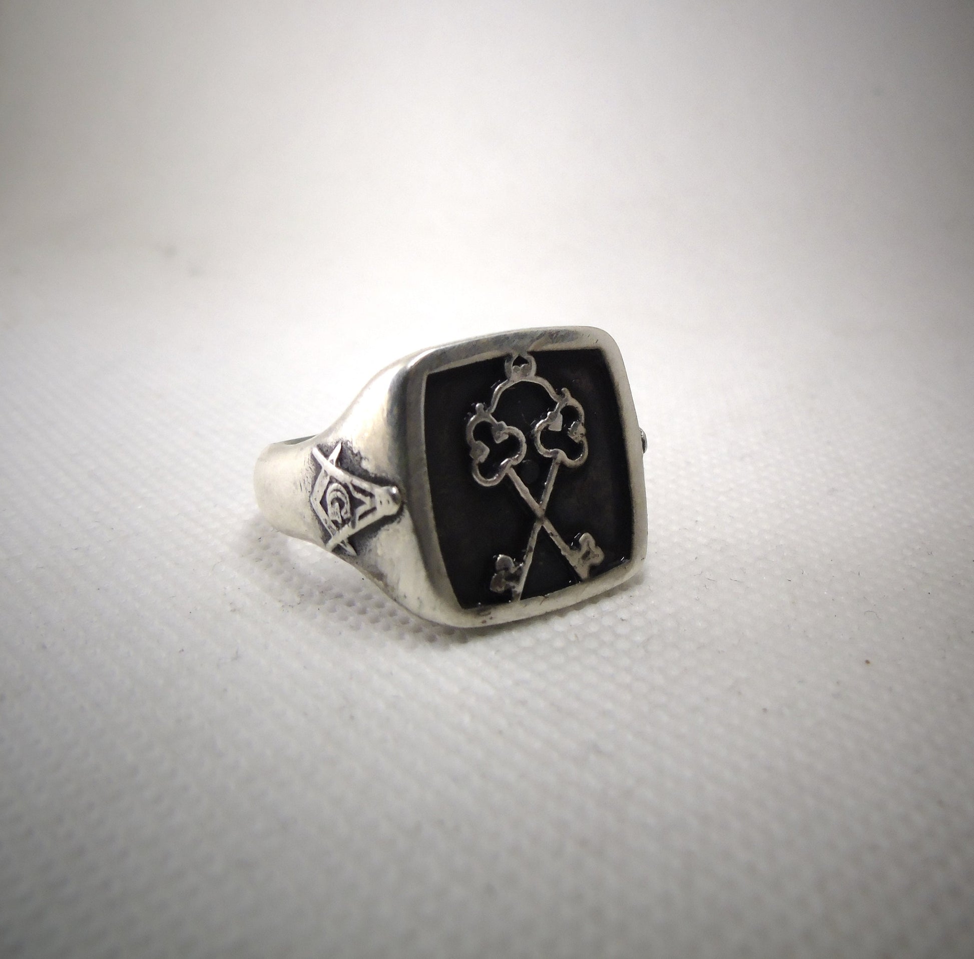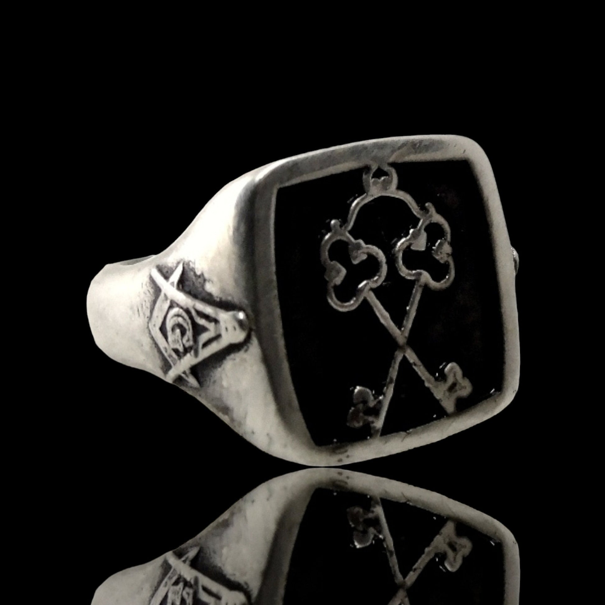 Visit our Etsy store, PhenomSkullJewelry, to purchase this unique and stylish Silver Key-holder Masonic Ring. This carefully crafted piece is a must-have for any Freemasonry enthusiast, and is sure to make a statement on your finger.