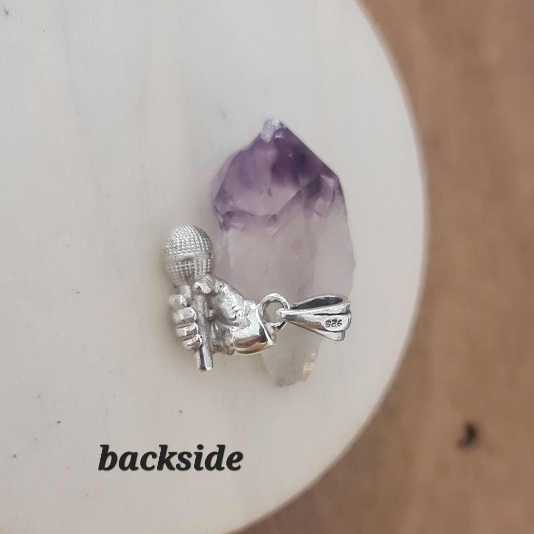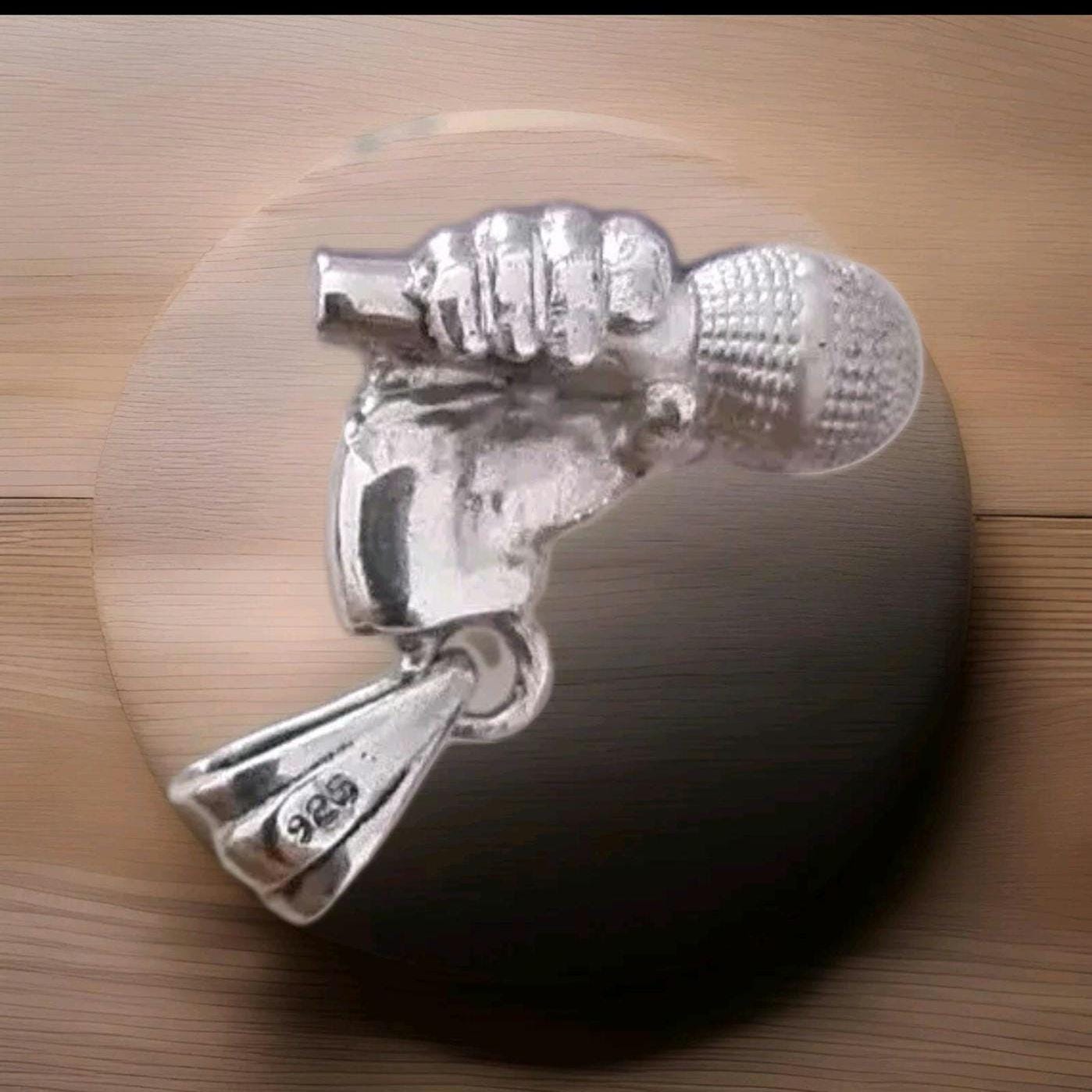 This handmade 925 silver microphone with hand pendant is a stylish piece of jewelry that is perfect for music lovers and singers. The detailing on this piece is exceptional and the high quality sterling silver gives it a luxurious feel. Please note that the chain is not included with the pendant.
