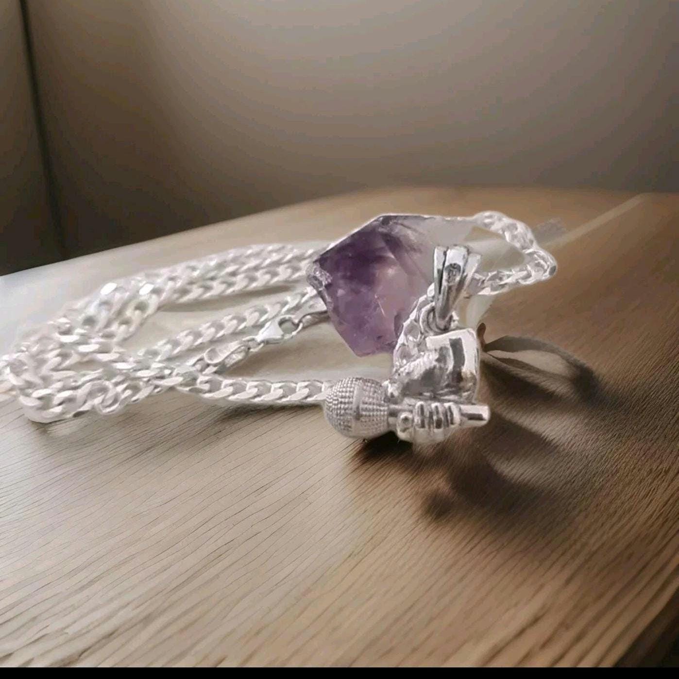 Visit our Etsy shop to see our full range of products and purchase this stunning silver microphone with hand pendant today!,,