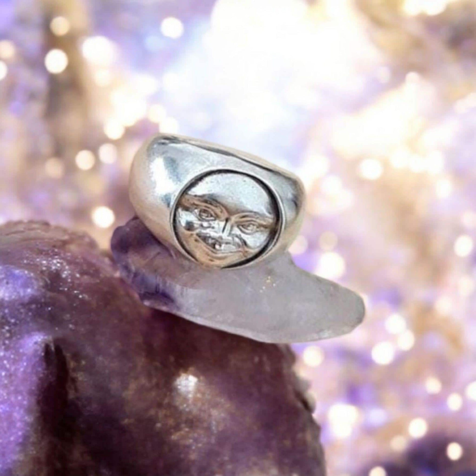 Moon Face Ring - Celestial Jewelry Chunky solid Sterling Silverring