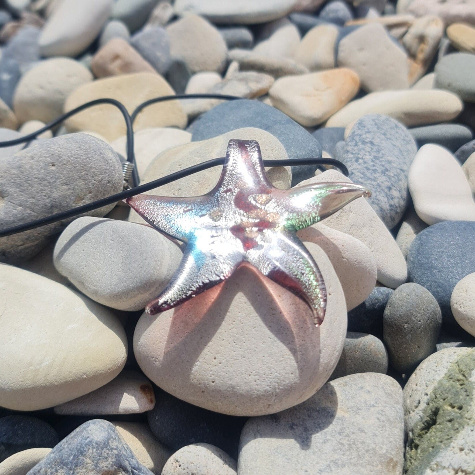 Murano glass oversized multicolor starfish pendant, necklace, choker, clavicle, millefiore glass star,