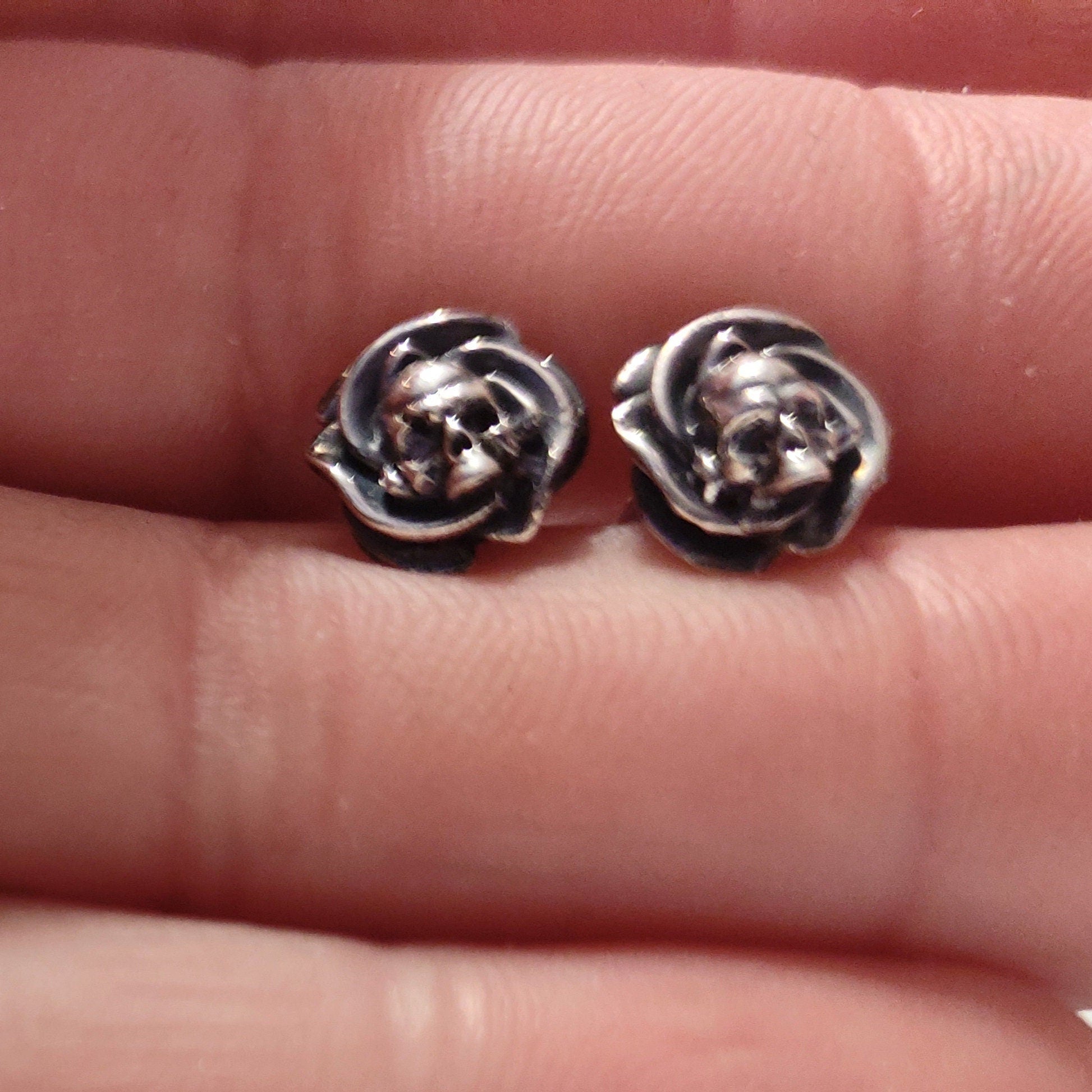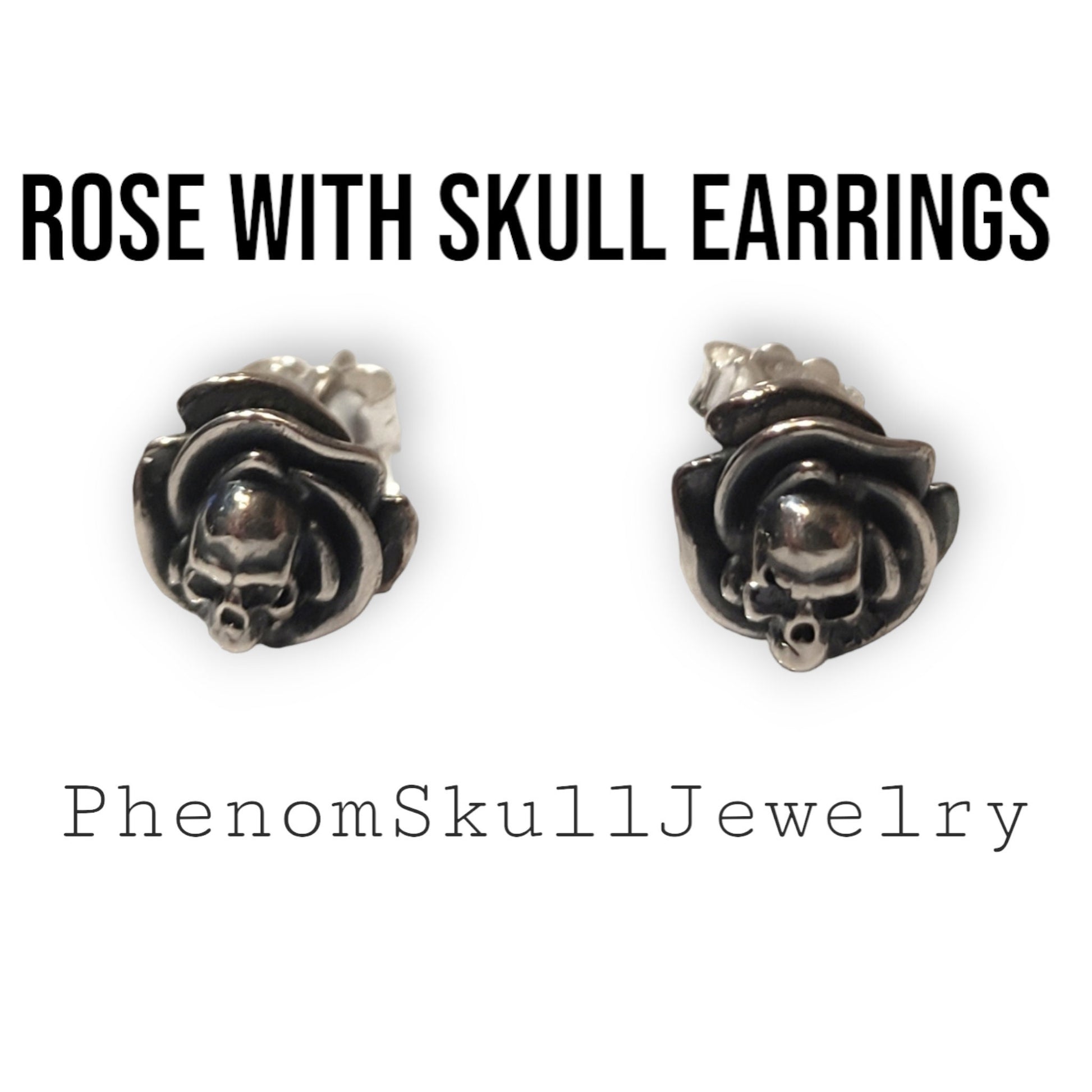 Order your 925 Sterling Silver Rose with Skull Stud Earrings today and add a touch of gothic glamour to your jewelry collection. Our dispatch time is approximately 1-2 weeks, and we ship worldwide with tracking. Shop now at our Etsy store: https://www.etsy.com/uk/shop/PhenomSkullJewelry?ref=simple-shop-header-name&listing_id=1317264353