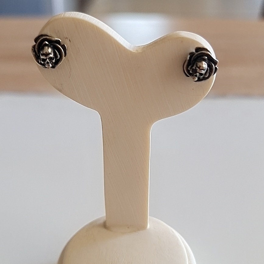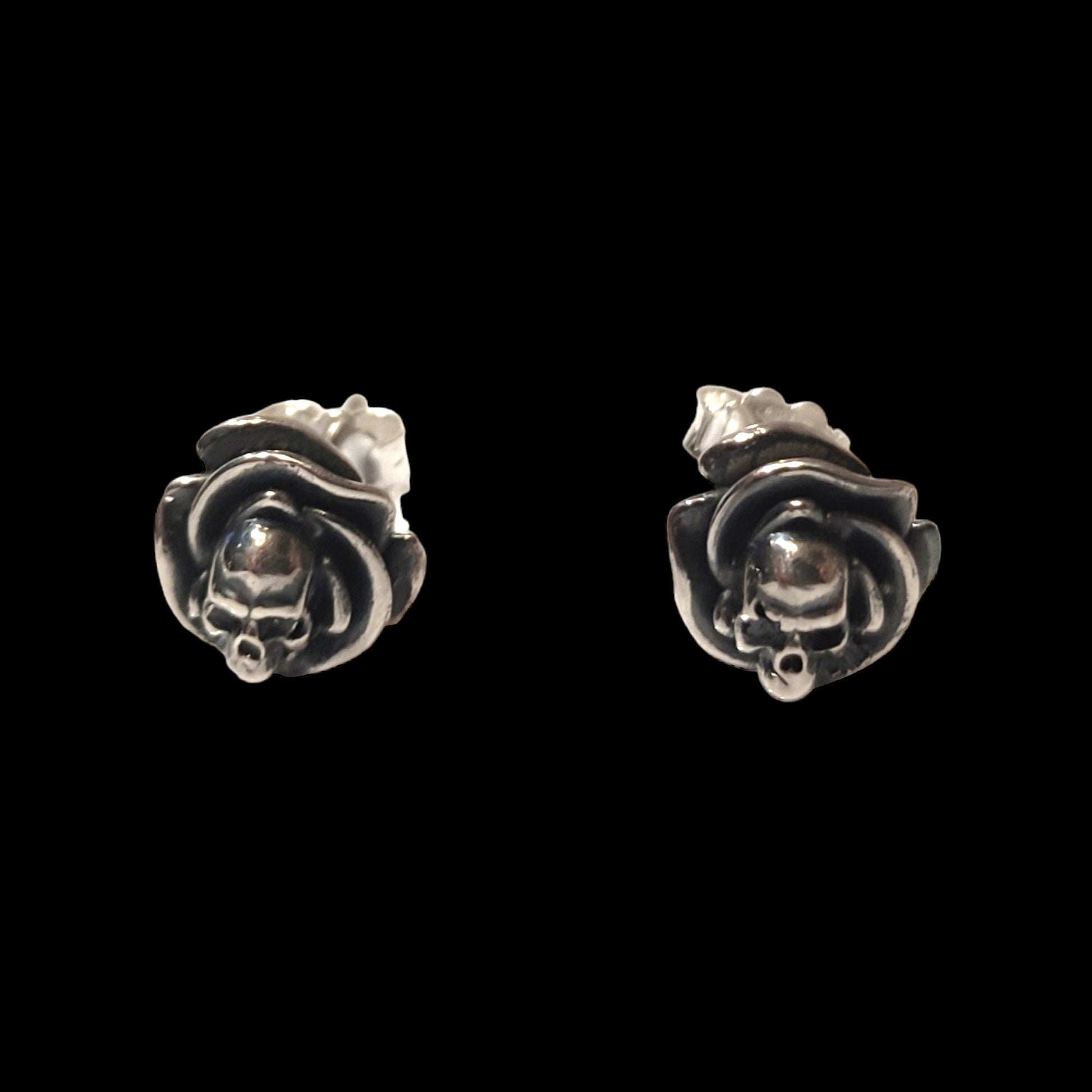 Roses and Skulls Stud Earrings - Gothic Style - Sterling Silver -