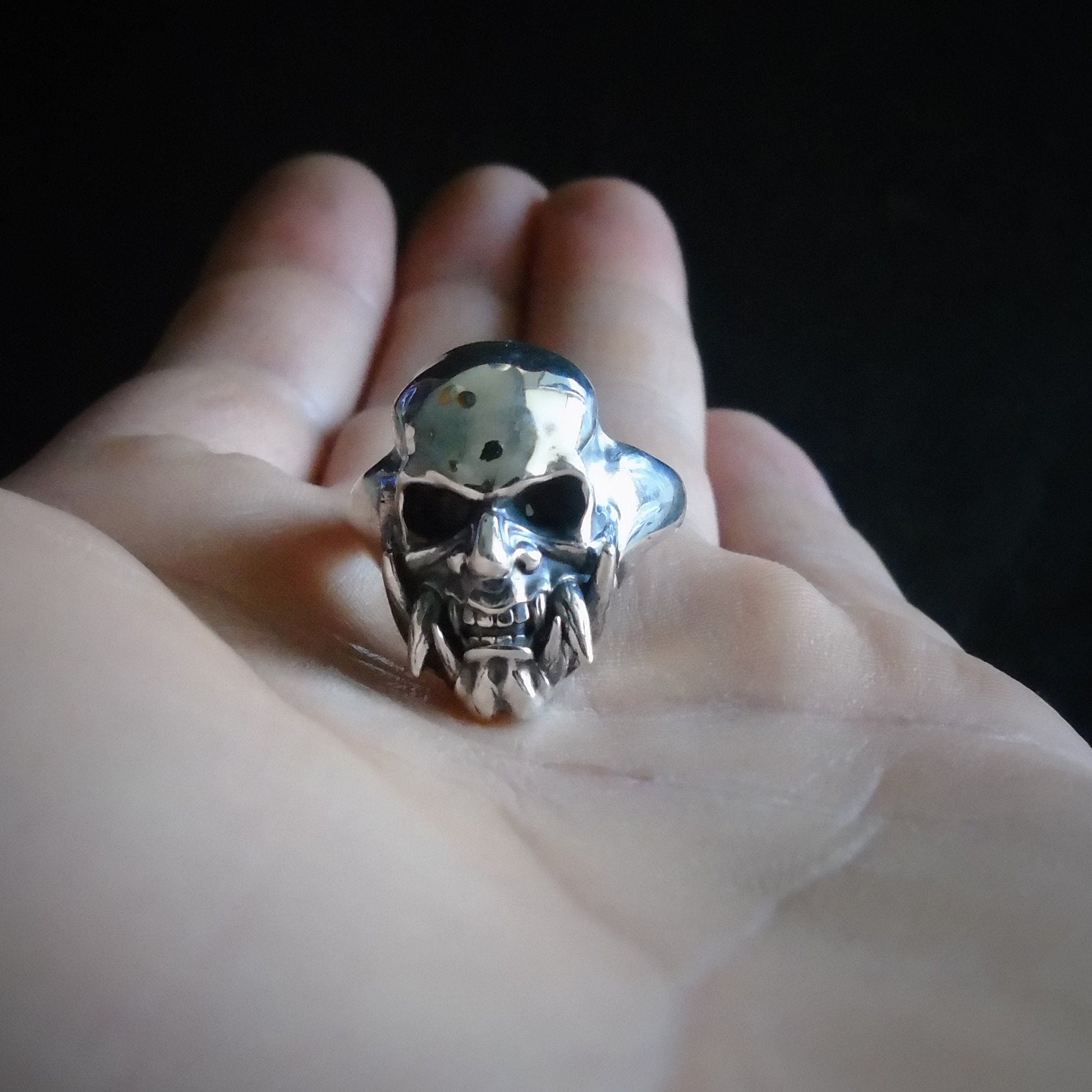 Samurai Japanese Skull Ring Sterling Silver Art, Ancient & Modern Japanese Style