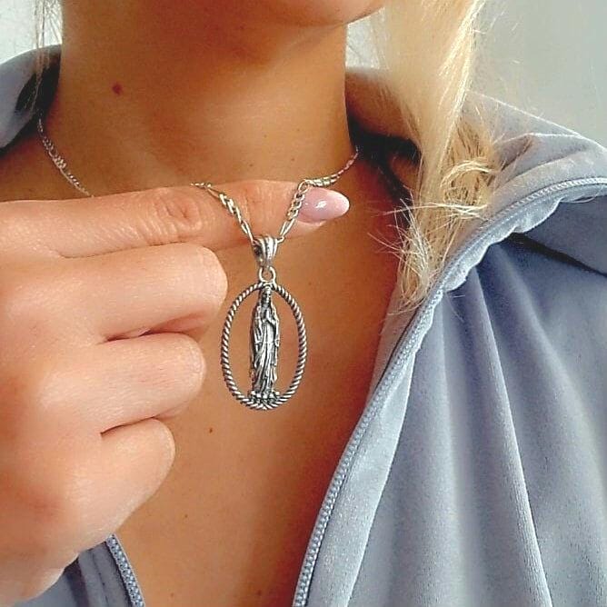 "Absolutely stunning pendant! The detail is amazing, and it feels great to wear. I love the gothic style and the symbolism of Santa Muerte. Highly recommend this item!" - Jane D.