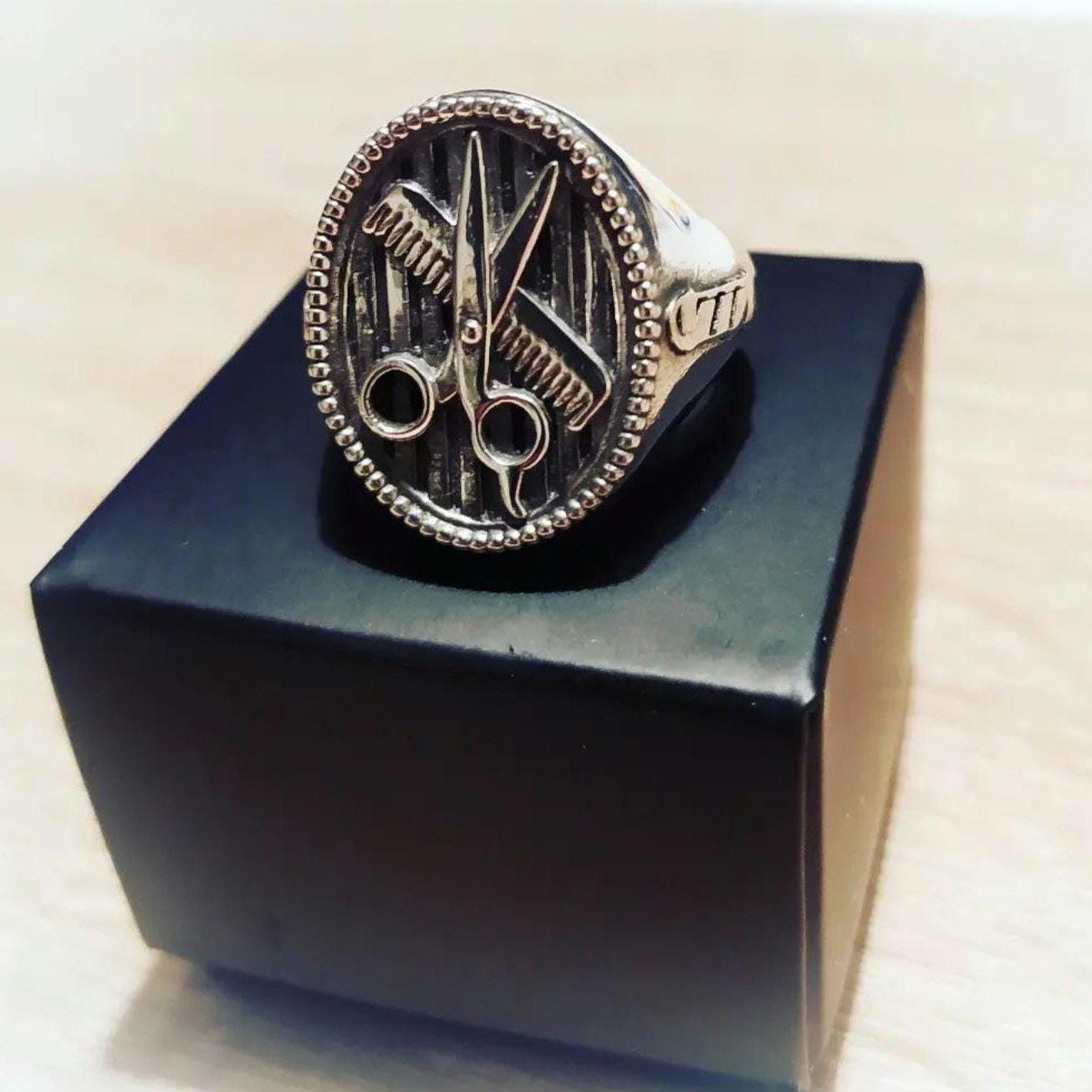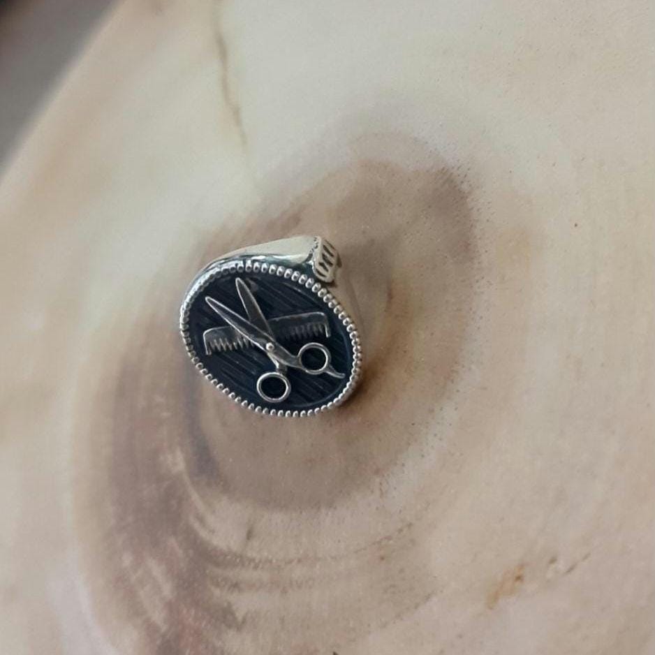 Add this handmade Sterling silver Barber's scissors and comb signet Ring to your collection today! Whether you're a professional barber or just someone who appreciates unique, high-quality jewelry