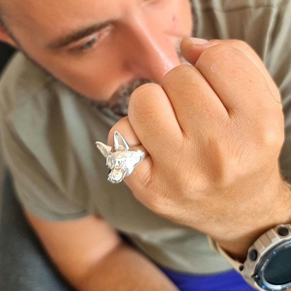 Sterling Silver German Shepherd Ring: Animal Jewelry immaculate details