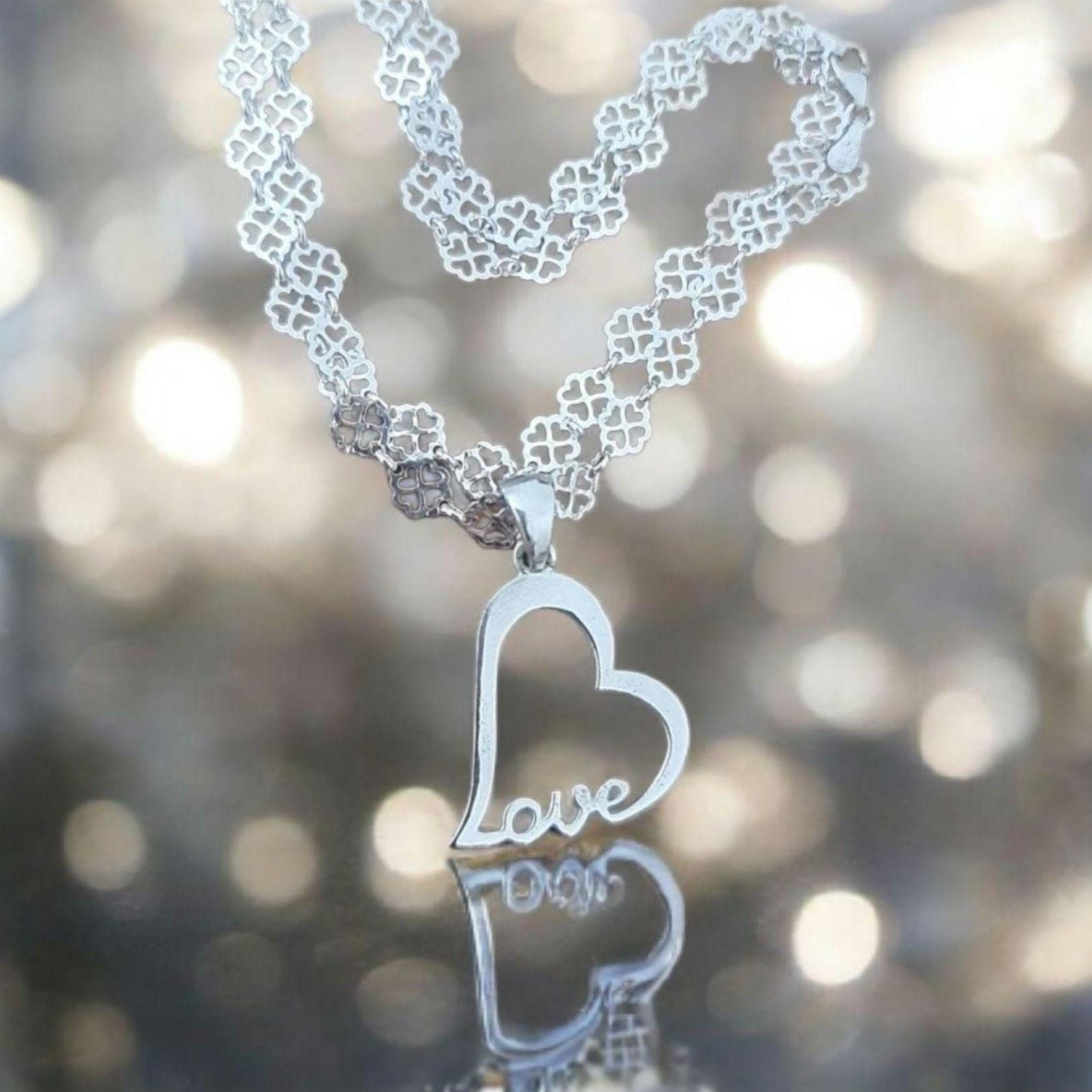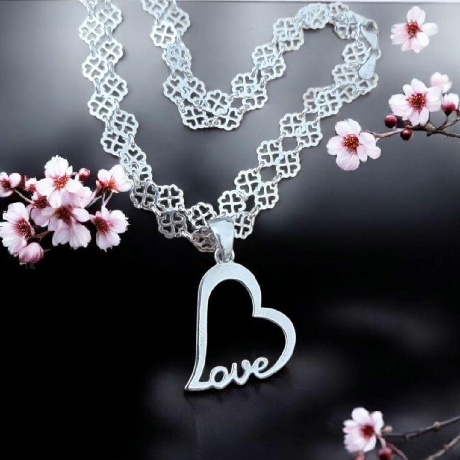Sterling Silver Love Heart Necklace - Floral Chain 45 cm