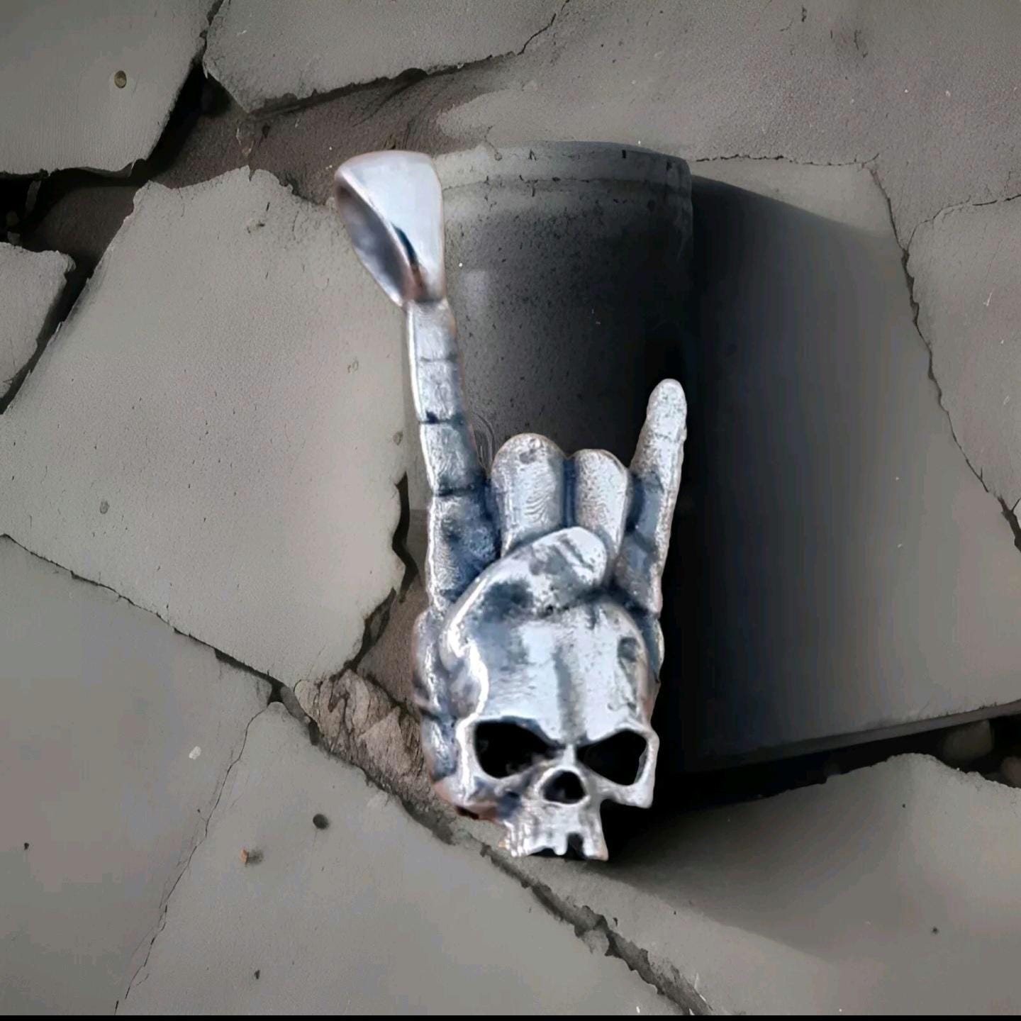 Sterling Silver Rock On Skull Pendant: Punk Gothic Jewelry