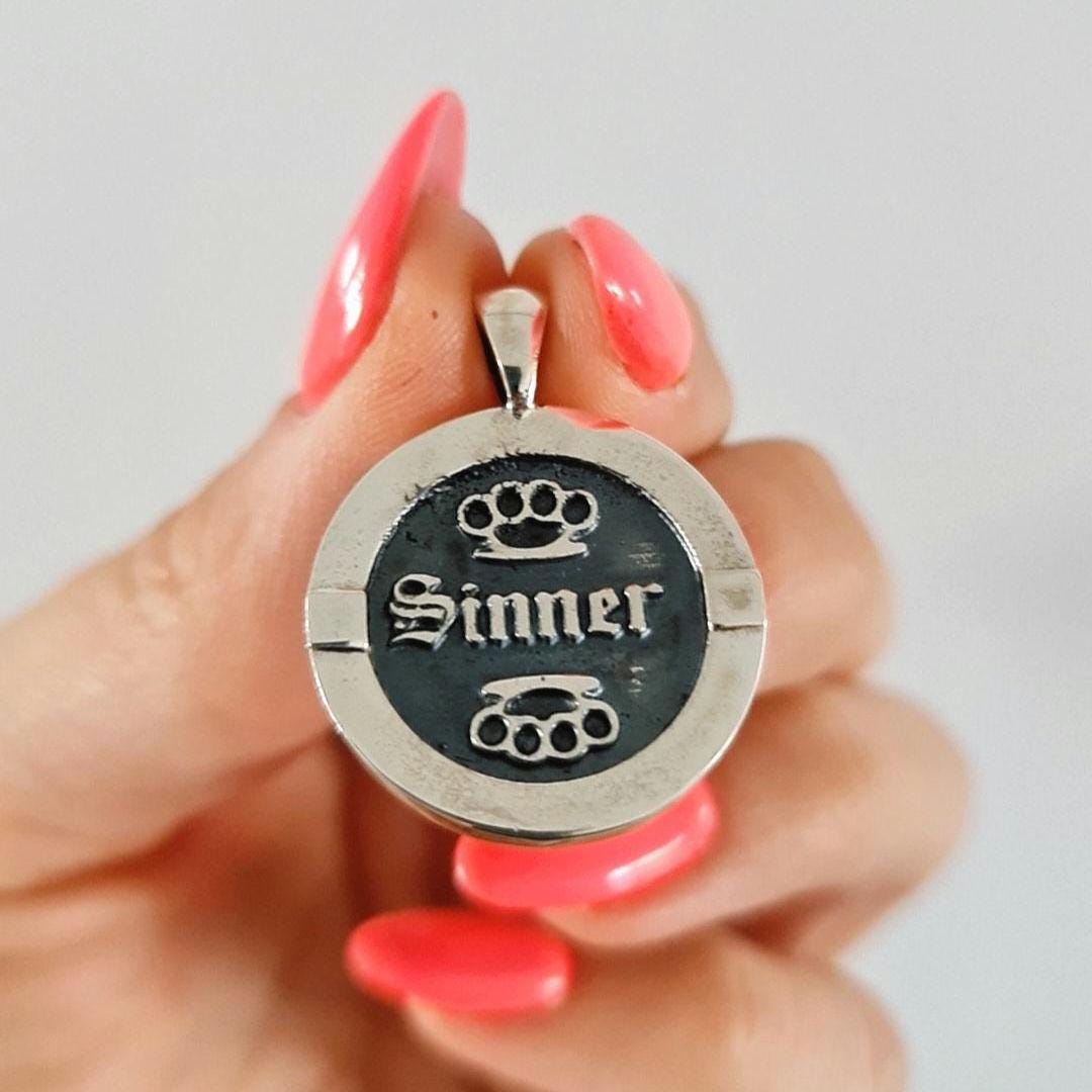 This Sinner pendant is handmade with 925 silver, ensuring the quality and durability of the piece.