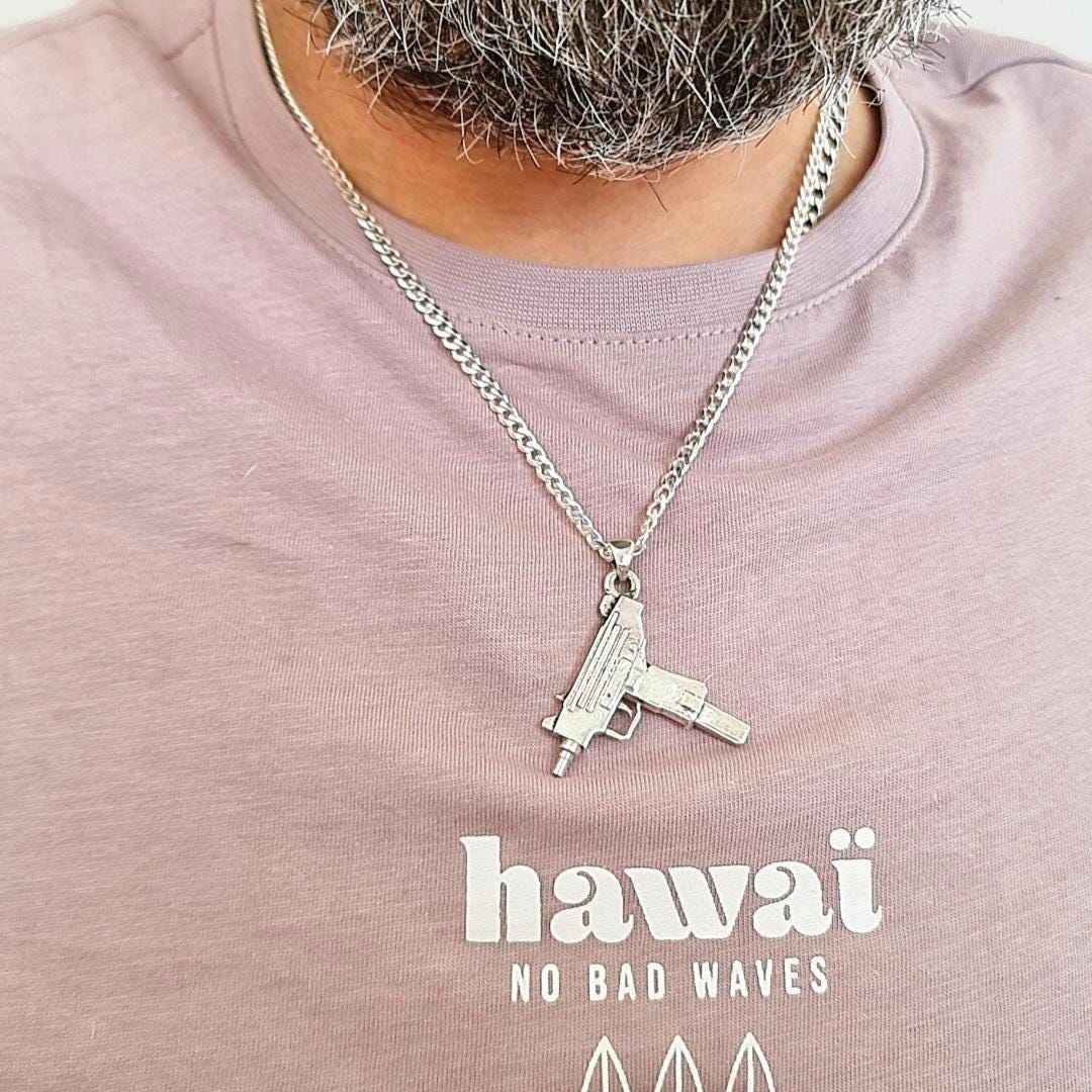 Order your Handmade Sterling Silver Uzi gun pendant today and make a bold statement with your accessories.