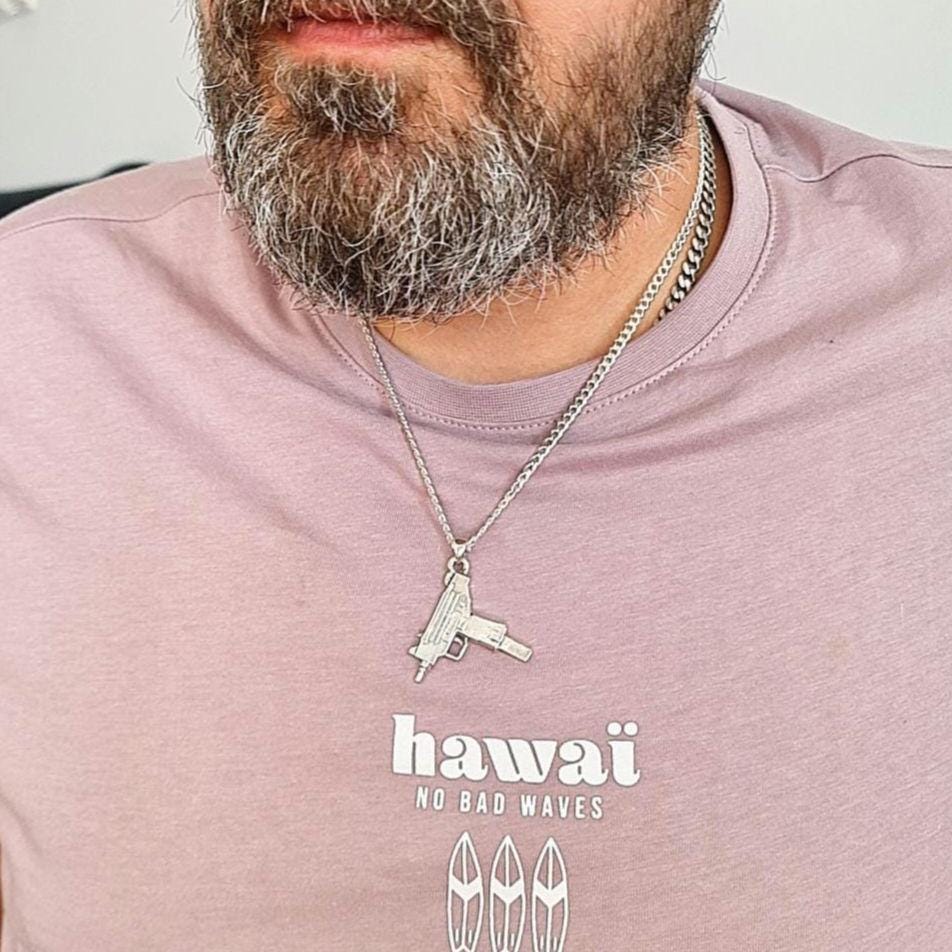 This Uzi gun pendant is versatile enough to be worn with any outfit for any occasion. Whether you're going out with friends or attending a formal event, this piece will add a unique touch to your outfit.